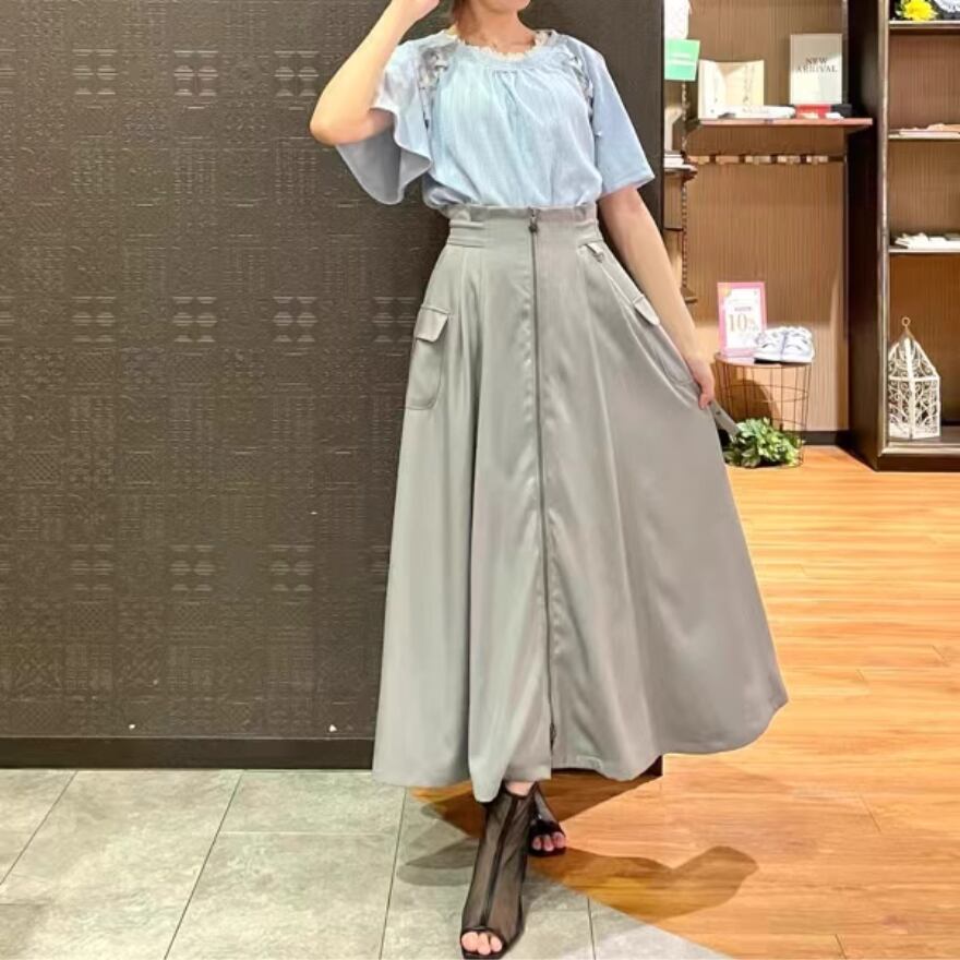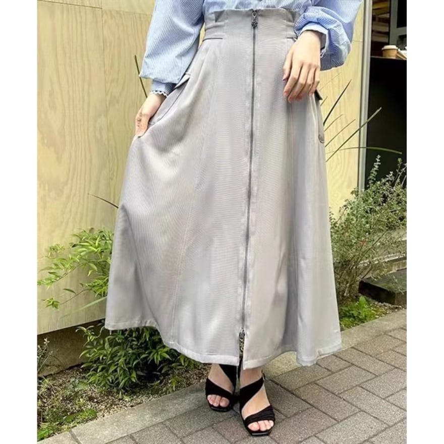 センターZIPアップにウエストゴムのらくちんロングスカートです