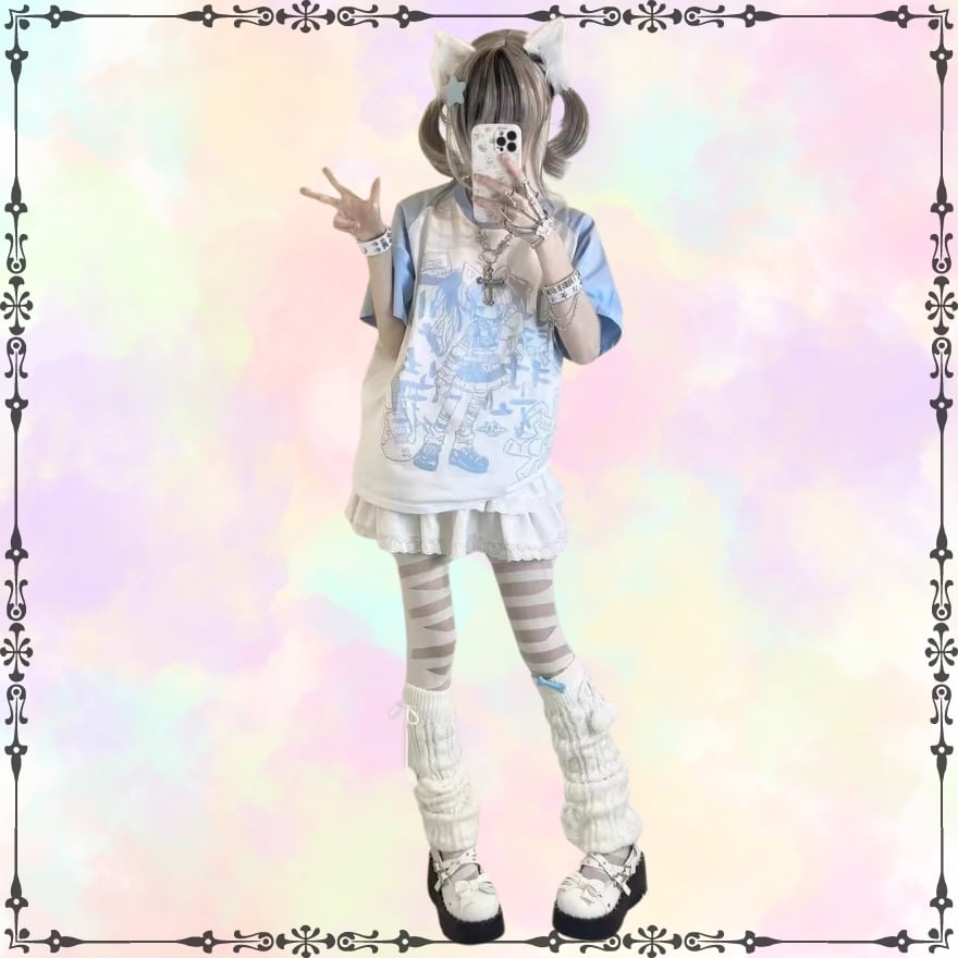 サブカル 服 地雷系 通販 Tシャツ イラスト風 プリント 闇かわいい 系