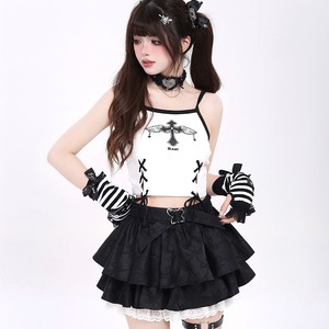 即納 キャミソール トップス 十字架 レースアップ リボン 闇かわいい|天使と悪魔