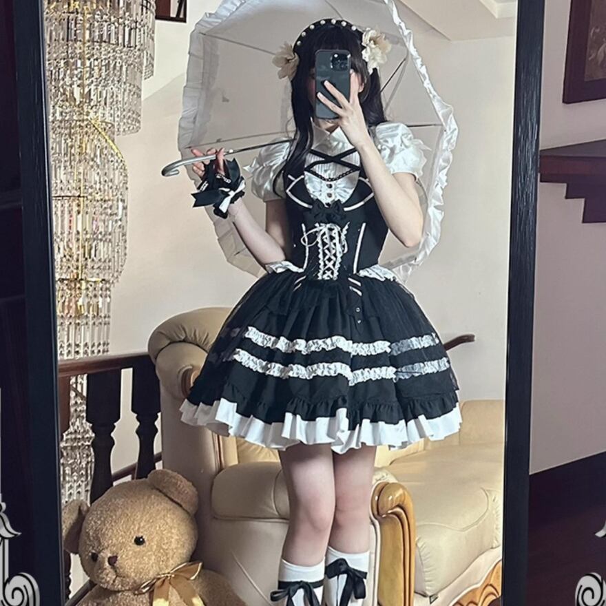 サブカル 服 地雷系 通販 ジャンパースカート 黒猫メイド服 コンカフェ イベント衣装 闇かわいい ストリート系