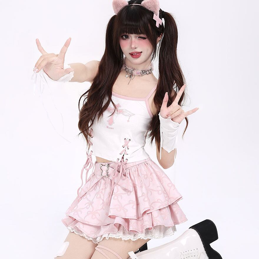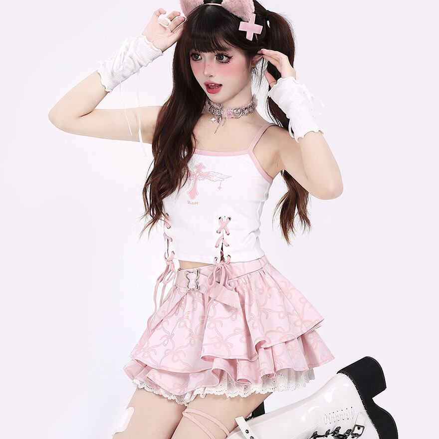 サブカル 服 地雷系 通販 ミニスカート レース ケーキスカート リボン フレア 闇かわいい