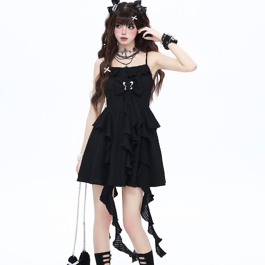 サブカル 服 地雷系 通販 キャミソールワンピース リボン フリル 長袖付き 闇かわいい
