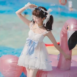 水着 ワンピース かわいい 体型カバー フリル リボン ガーリー 甘め ロマンティック ゆめかわ|天使と悪魔