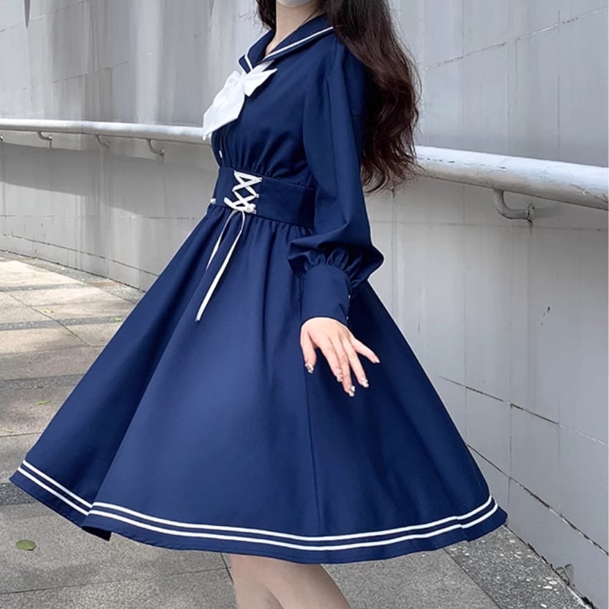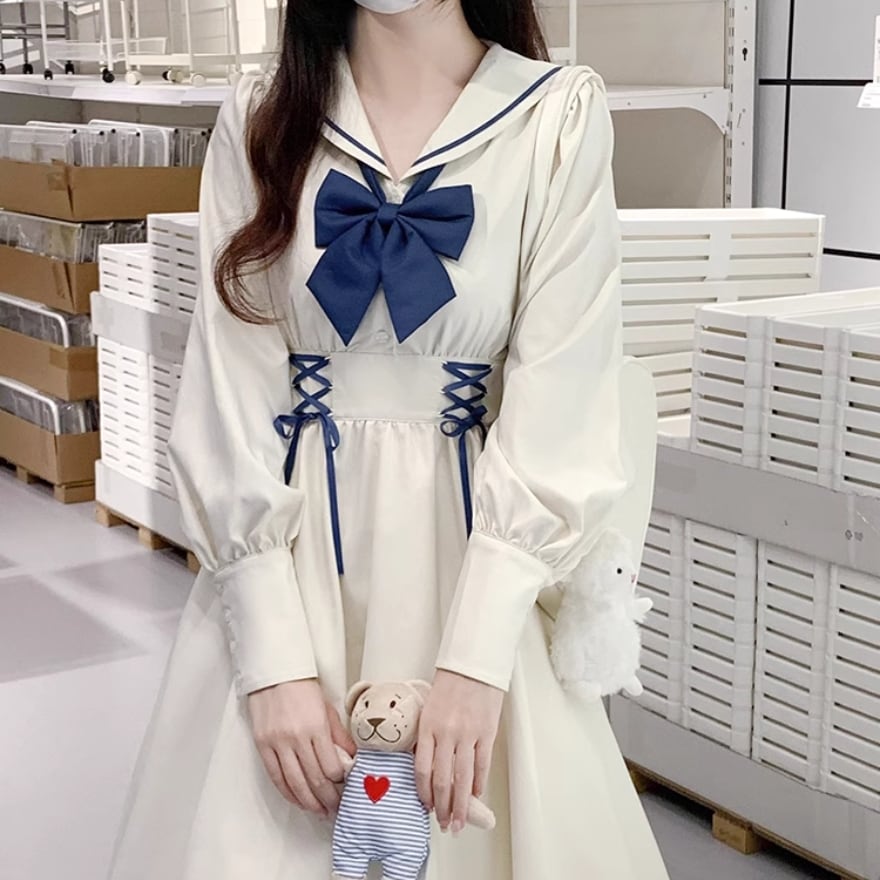 サブカル 服 地雷系 通販 ゆめかわ セーラー風 ワンピース 半袖 レース 原宿スタイル 量産型 ガーリー ソフトロリータ