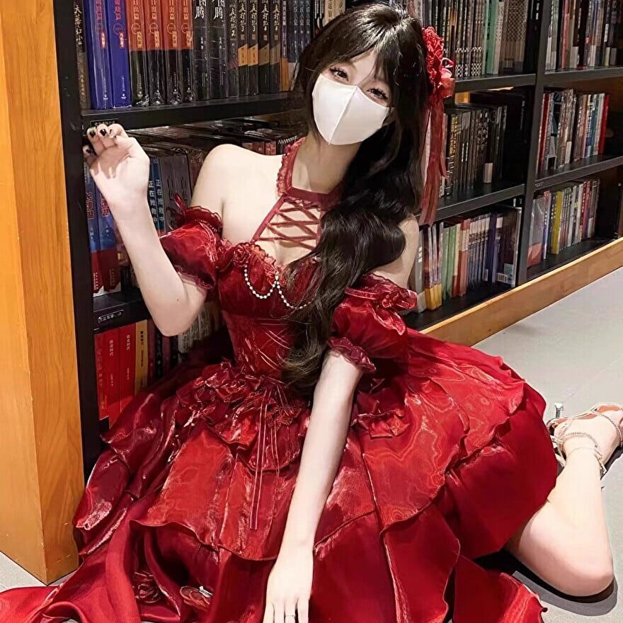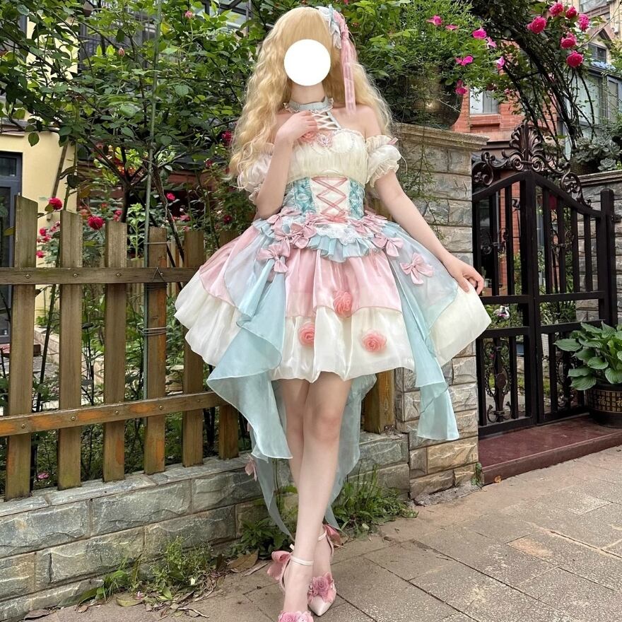 サブカル 服 地雷系 通販 ドレス ホルターネック プリンセスドレス キラキラ衣装 ステージ衣装 かわいい 生誕祭 ドールファッション