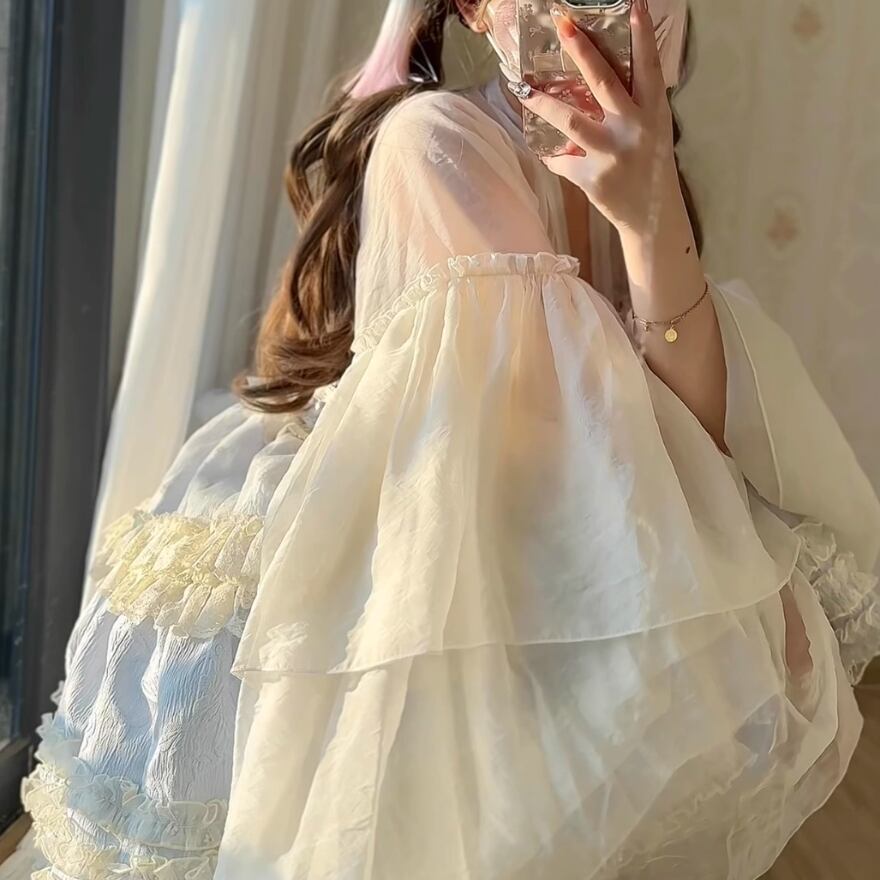 サブカル 服 地雷系 通販 ゆめかわ ブラウス ブラウス 姫袖 トランペットスリーブ ベビードール ふぁっしょん