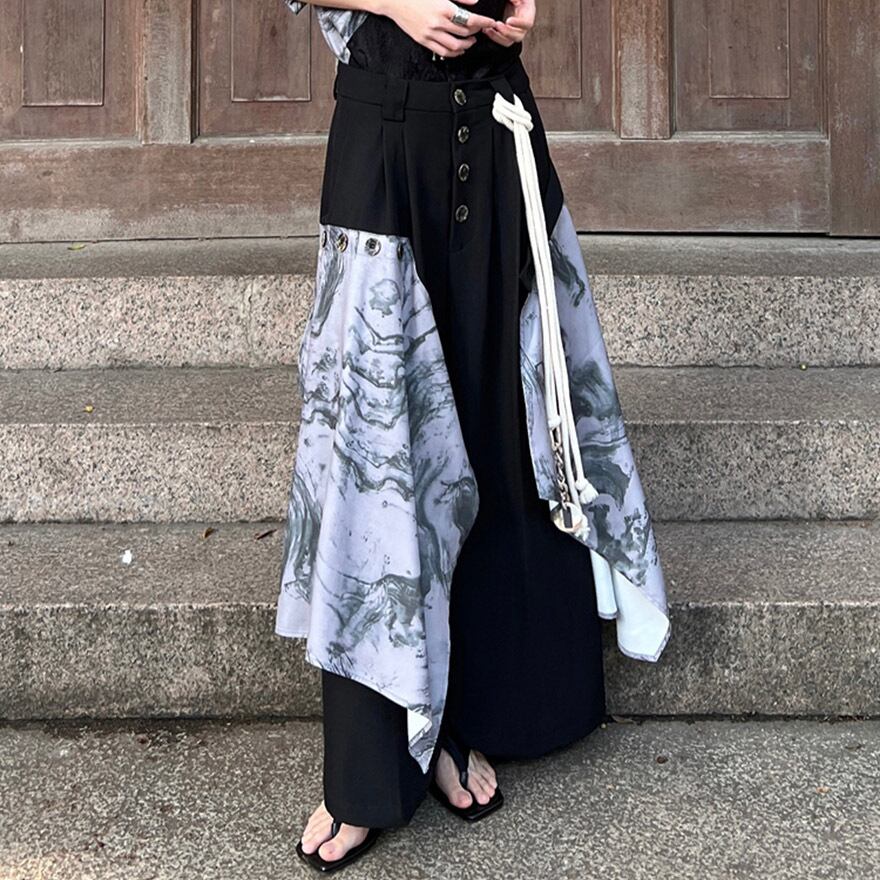 サブカル 服 地雷系 通販 ファッション 女子 ワイドパンツ スカート風 タイダイ柄 重ね着風 チャイナ風 中華 レトロ 闇かわいい ストリート系