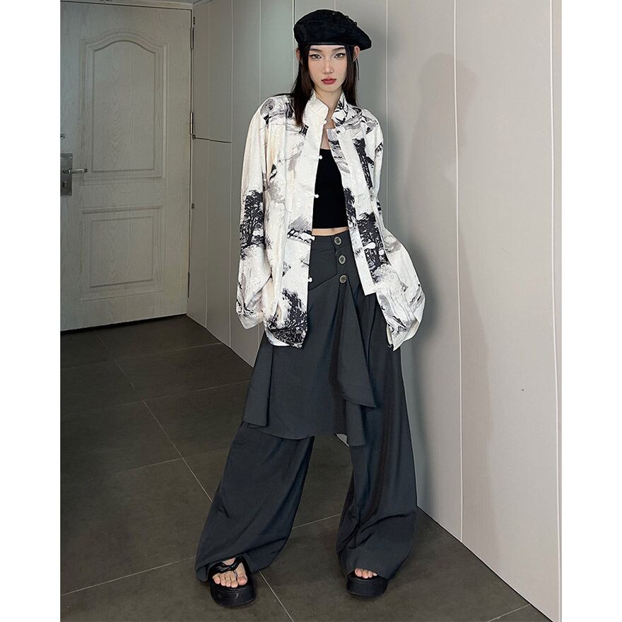 サブカル 服 地雷系 通販 ファッション 女子 ワイドパンツ ハイウエスト ボタン スカート風 チャイナ風 中華 レトロ 闇かわいい ストリート系