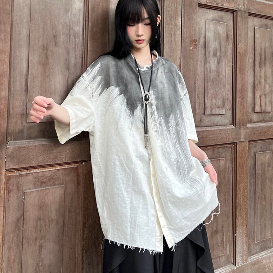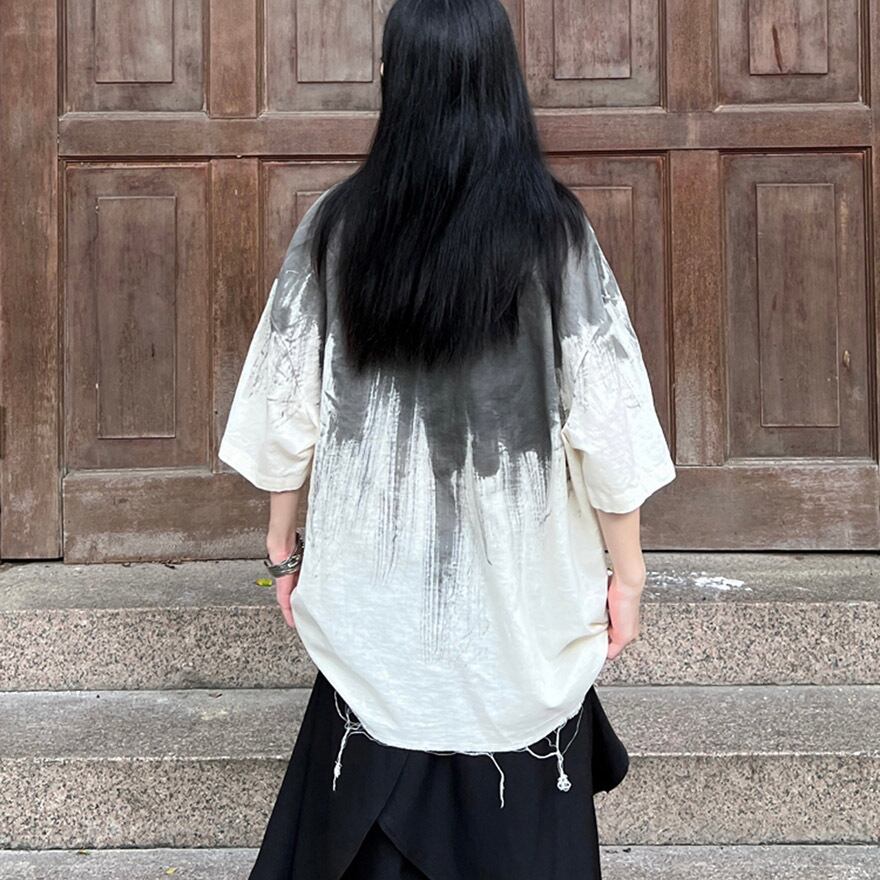 サブカル 服 地雷系 通販 ファッション 女子 半袖シャツ トップス 絞り染め インクデザイン チャイナ風 中華 レトロ 闇かわいい ストリート系