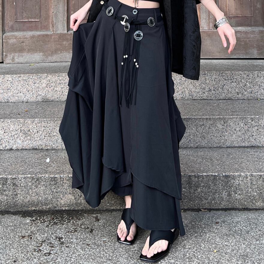 サブカル 服 地雷系 通販 ファッション 女子 ワイドパンツ クロップドキュロット ハイウエスト イレギュラーヘム チャイナ風 中華 レトロ 闇かわいい ストリート系