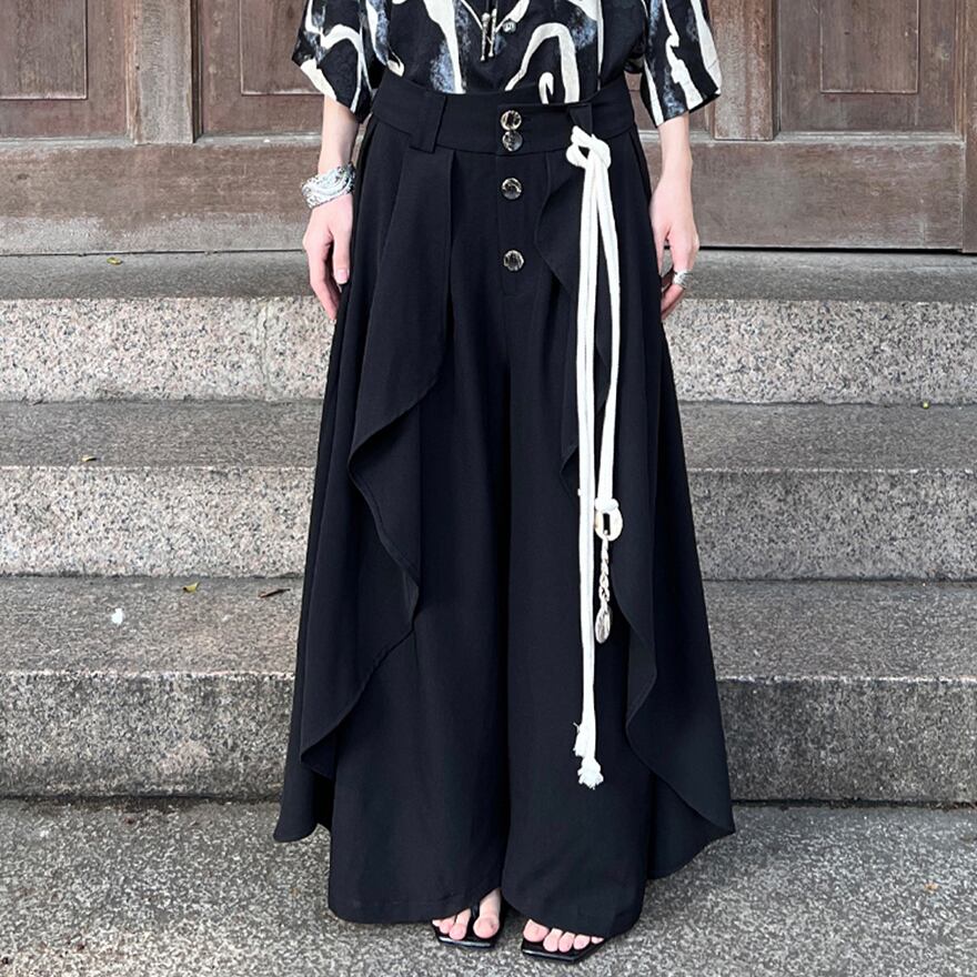 サブカル 服 地雷系 通販 ファッション 女子 ワイドパンツ スカート風 袴 ボタン チャイナ風 中華 レトロ 闇かわいい ストリート系