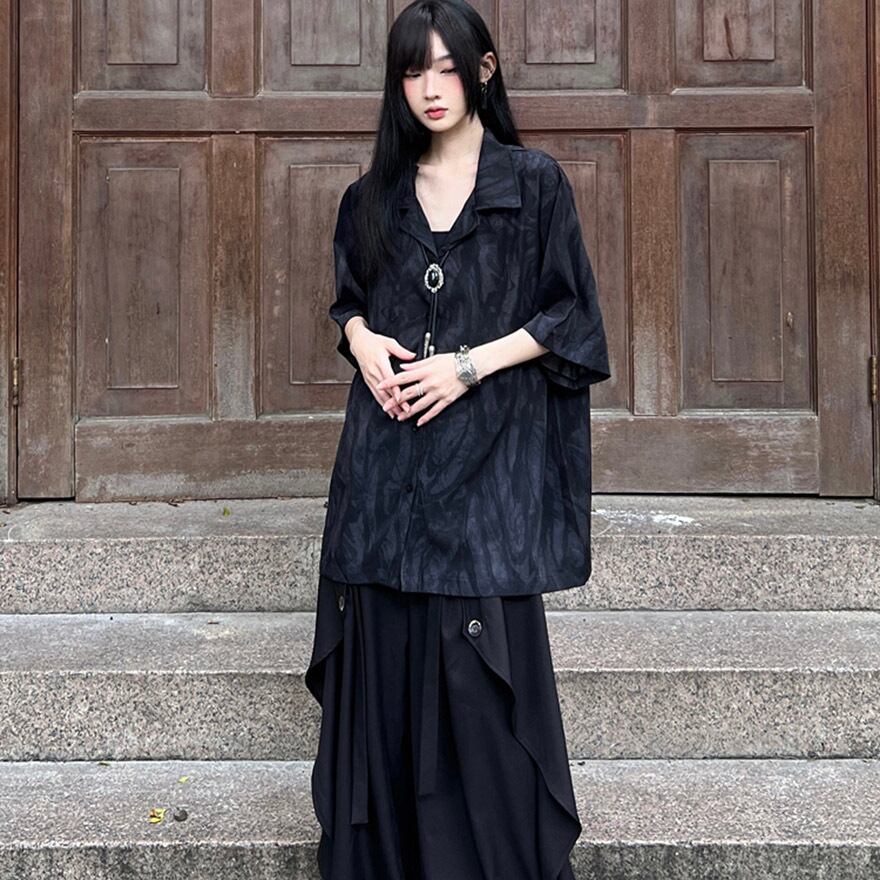サブカル 服 地雷系 通販 ファッション 女子 半袖シャツ トップス ドレープ オーバーサイズ チャイナ風 中華 レトロ 闇かわいい ストリート系