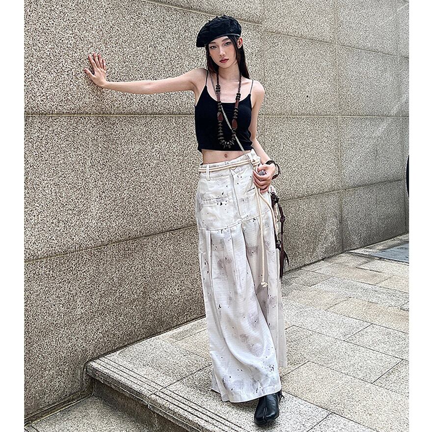 サブカル 服 地雷系 通販 ファッション 女子 ワイドパンツ ハイウエスト 絞り染め カーゴパンツ チャイナ風 中華 レトロ 闇かわいい ストリート系