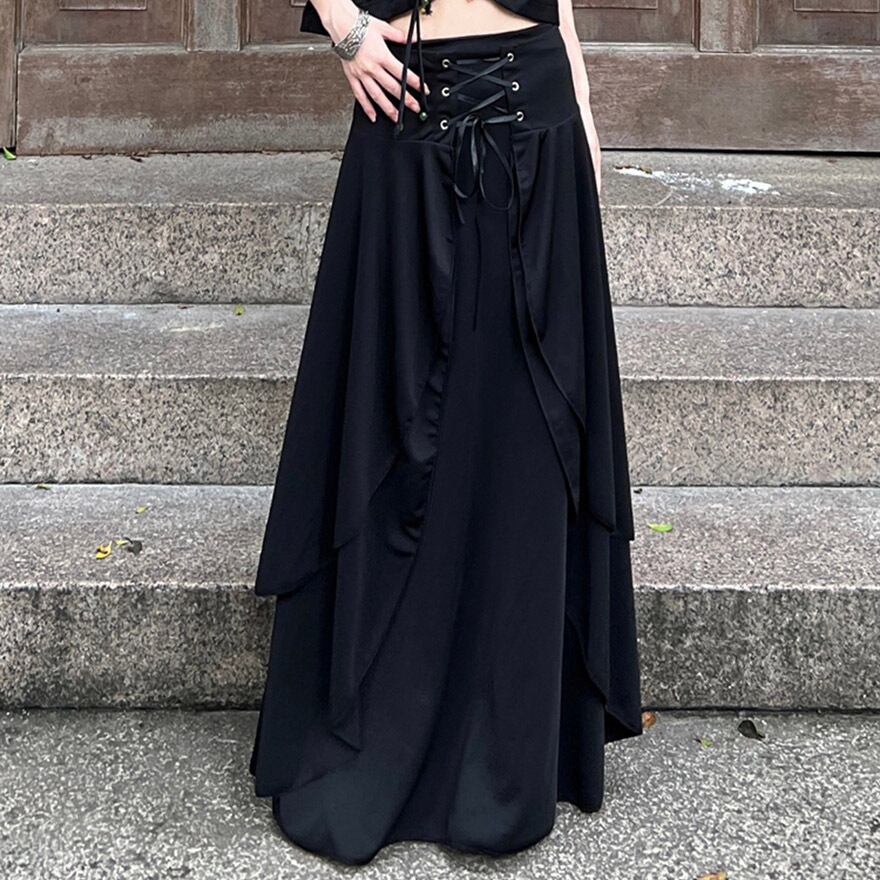 サブカル 服 地雷系 通販 ファッション 女子 ワイドパンツ レースアップリボン 巻きデザイン 袴 チャイナ風 中華 レトロ 闇かわいい ストリート系