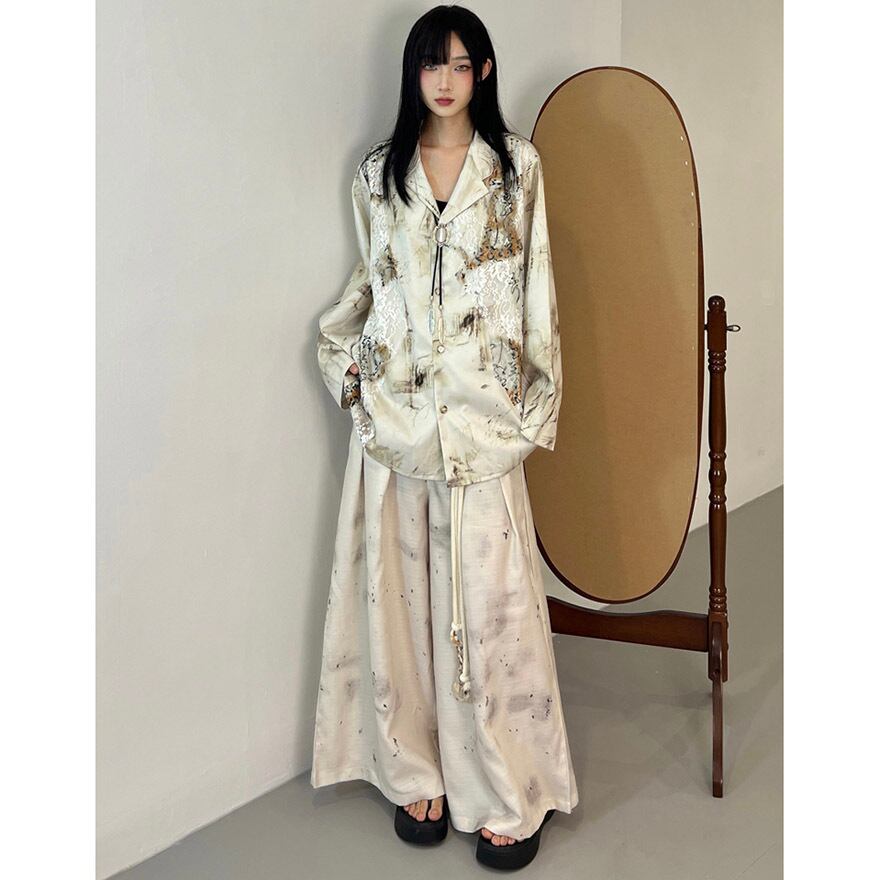 レース切り替えやデザインプリントがお洒落な長袖シャツです。