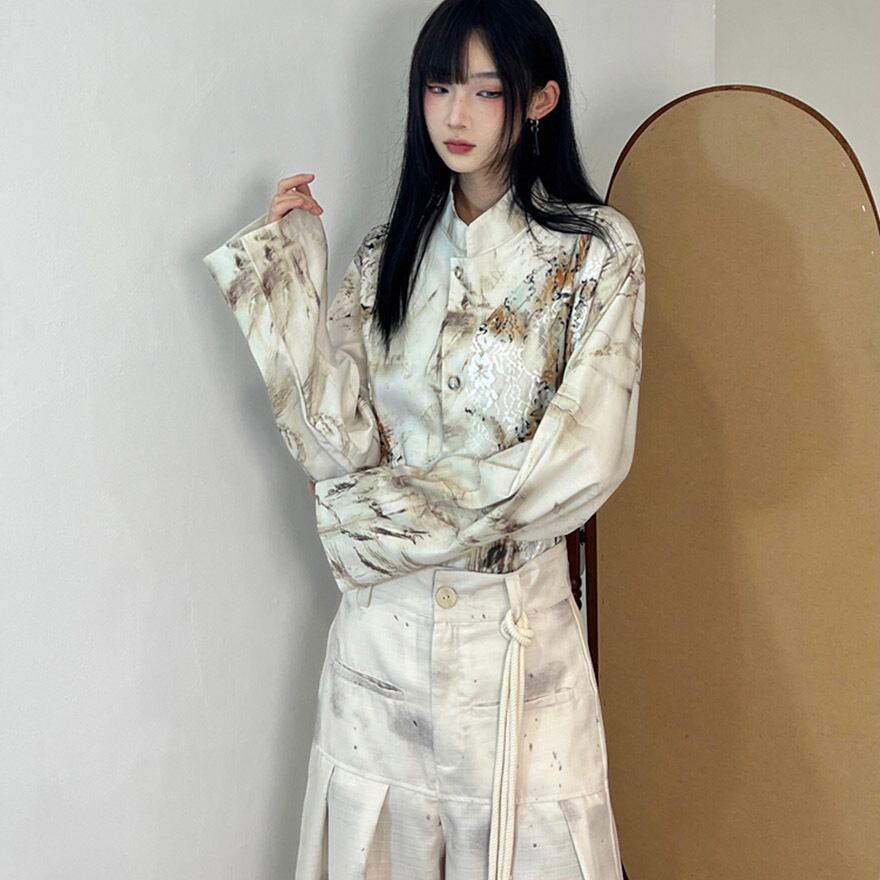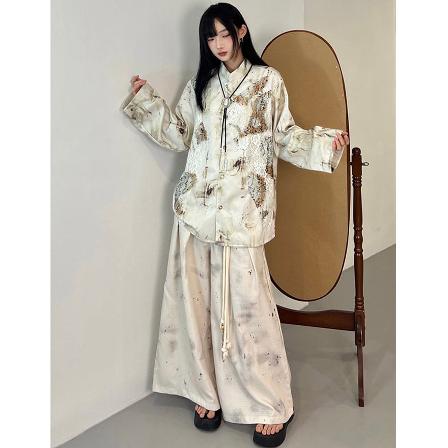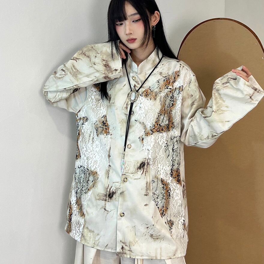 サブカル 服 地雷系 通販 ファッション 女子 長袖シャツ スタンドネック レース トップス チャイナ風 中華 レトロ 闇かわいい ストリート系