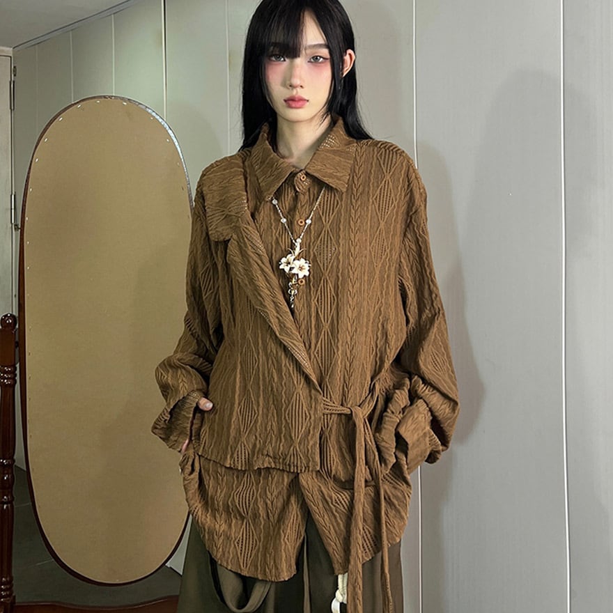 サブカル 服 地雷系 通販 ファッション 女子 長袖シャツ レースデザイン ヴィンテージ風 アリンメトリー チャイナ風 中華 レトロ 闇かわいい ストリート系