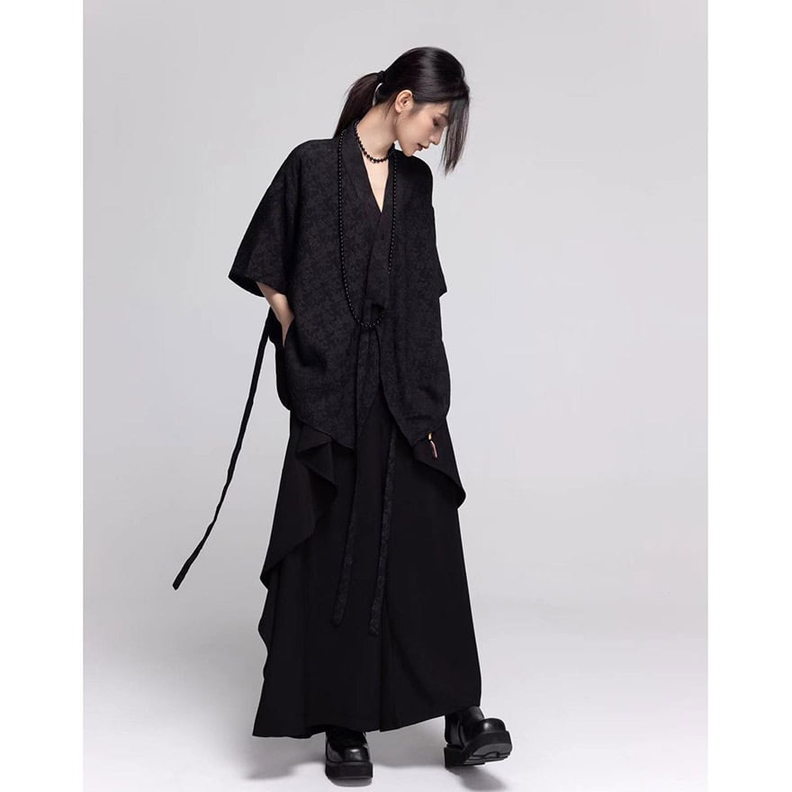 サブカル 服 地雷系 通販 ファッション 女子 半袖シャツ ジャケット 刺繍 ローブ Vネック チャイナ風 中華 レトロ 闇かわいい ストリート系