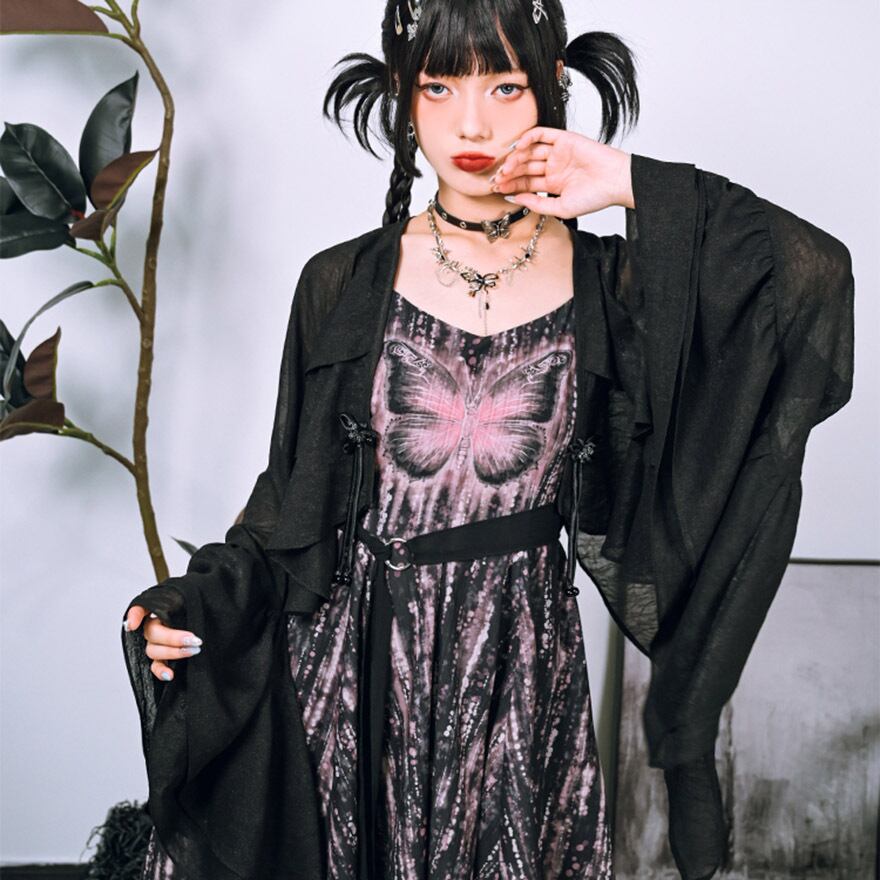 サブカル 服 地雷系 通販 チャイナ風服 チャイナ風服 古怪舎 カーディガン 透け感 シアー フレアスリーブ 姫袖 ショート丈 チャイナ風 中華 レトロ 闇かわいい ストリート系