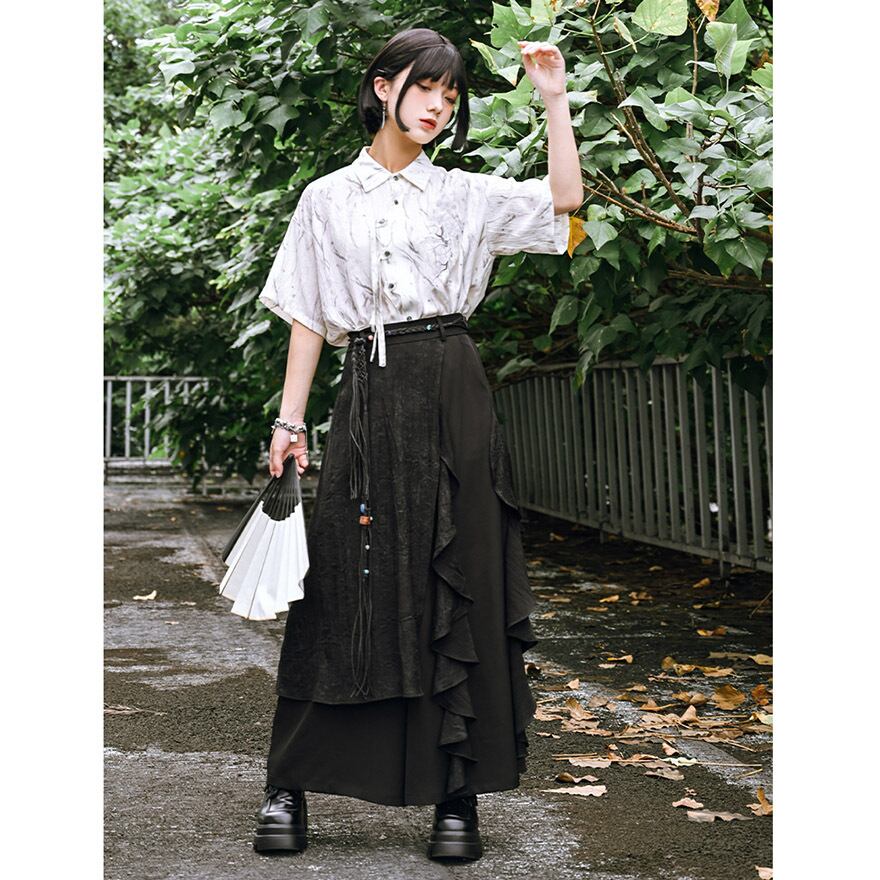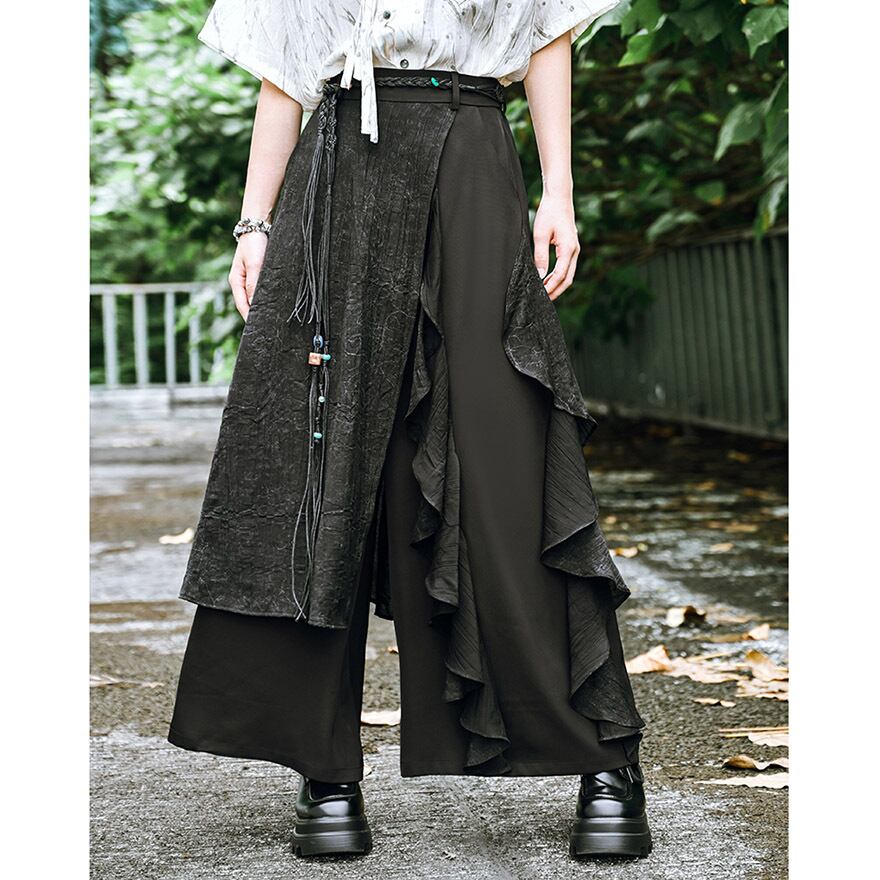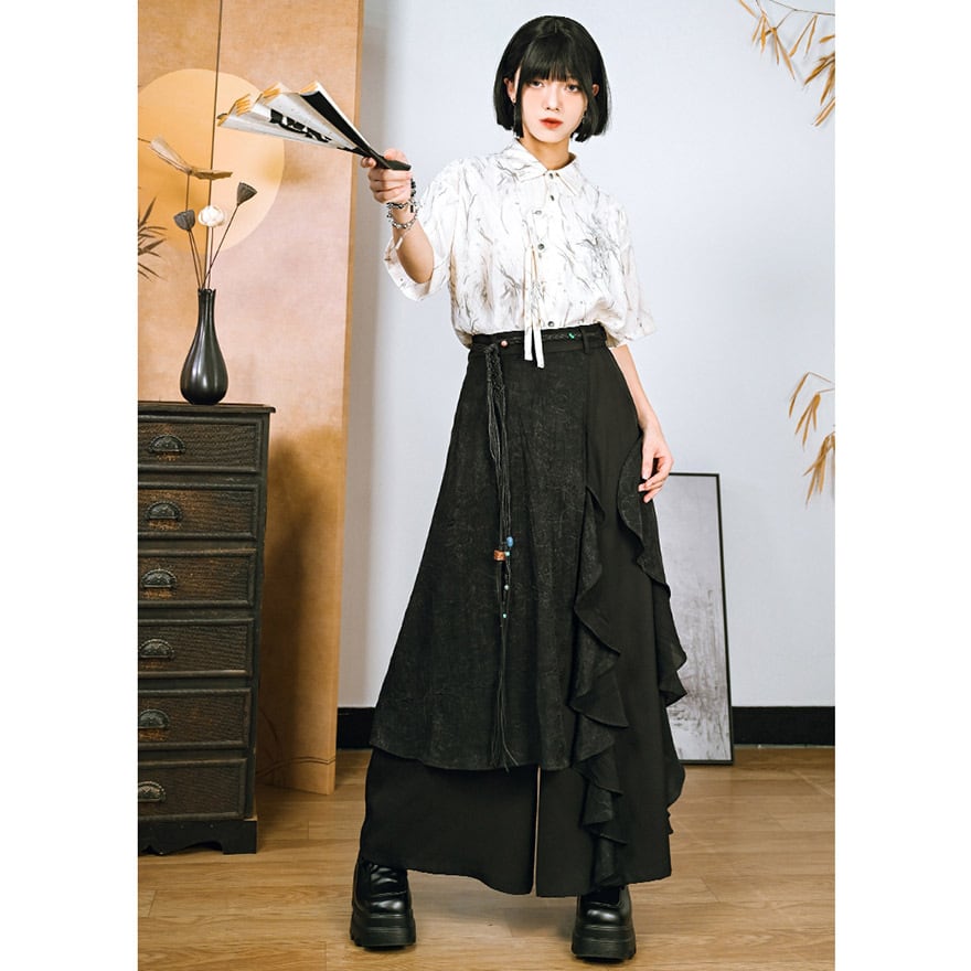 サブカル 服 地雷系 通販 チャイナ風服 チャイナ風服 古怪舎 ワイドパンツ キュロット ステッチ フリル チャイナ風 中華 レトロ 闇かわいい ストリート系