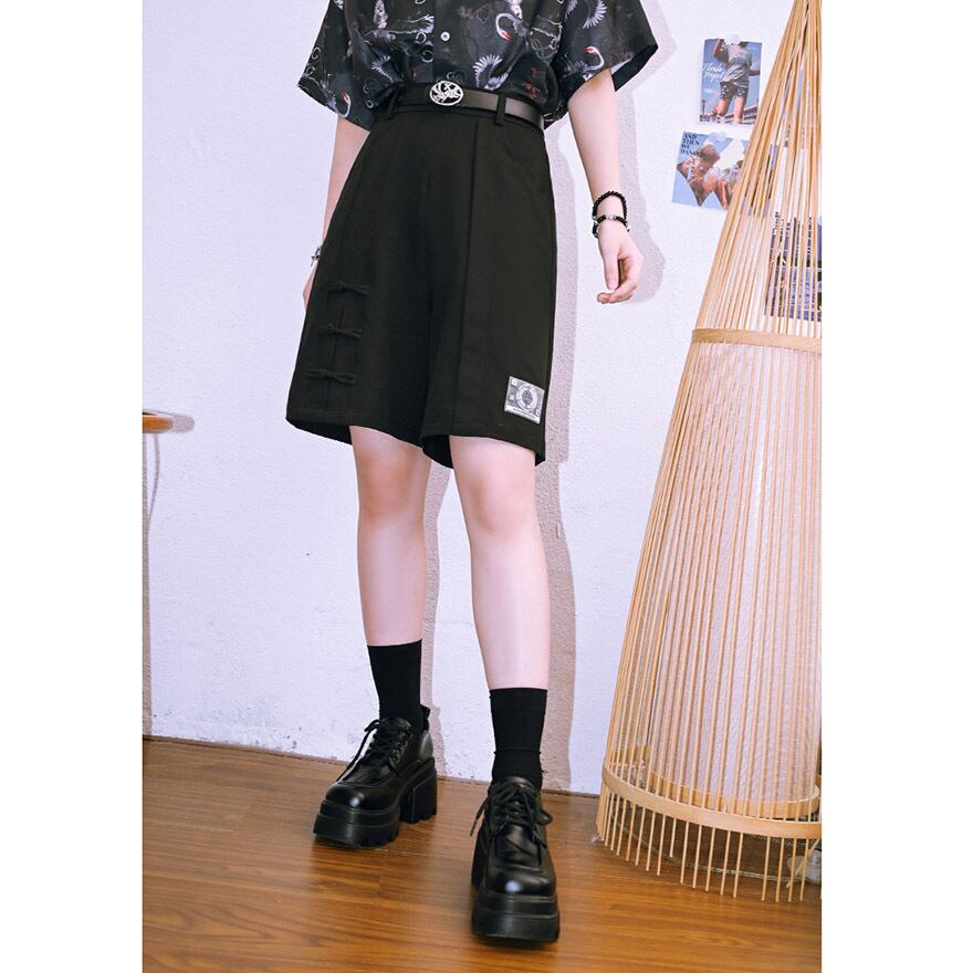 サブカル 服 地雷系 通販 チャイナ風服 チャイナ風服 古怪舎 ハーフパンツ ハイウエスト タグ ストレート ポケット チャイナ風 中華 レトロ 闇かわいい ストリート系