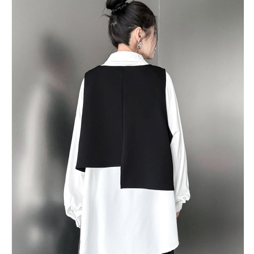 サブカル 服 地雷系 通販 ファッション 女子 ベスト 羽織り 重ね着 Vネック アシンメトリー レトロ 闇かわいい ストリート系