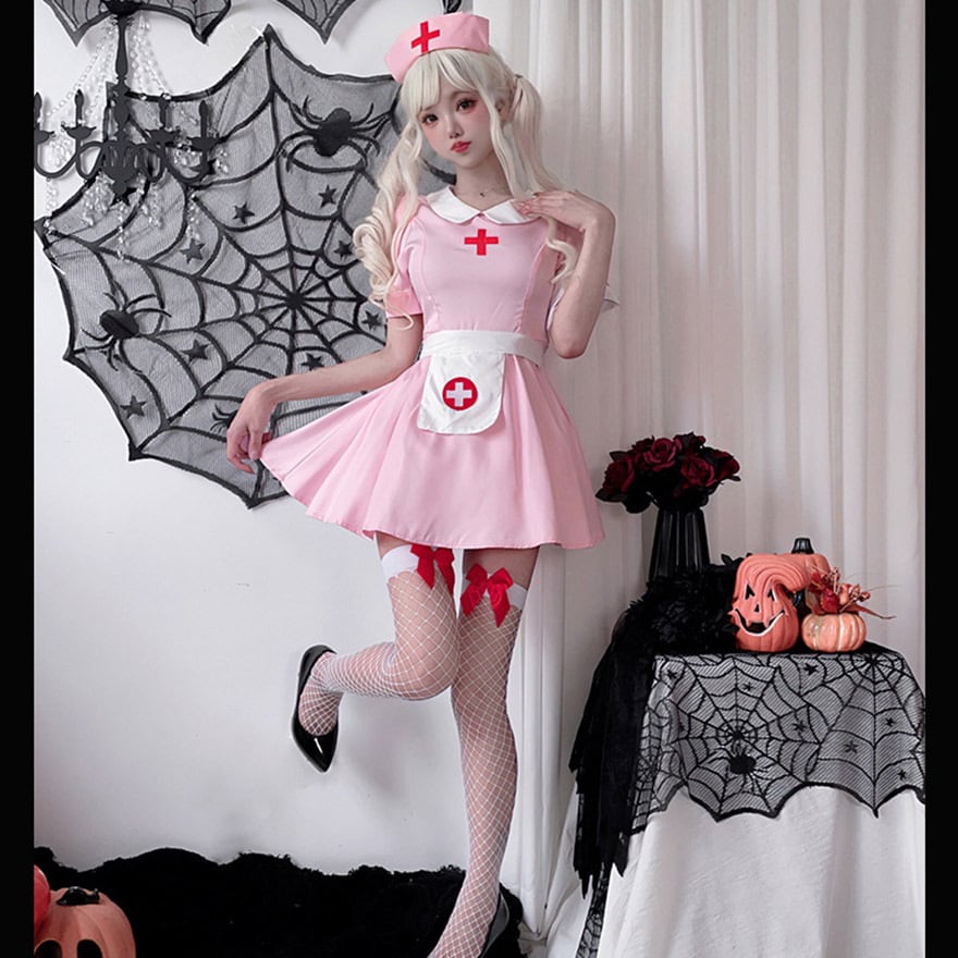 サブカル 服 地雷系 通販 ファッション 女子 ワンピース ピンク 4点セット ナース コスプレ 衣装 イベント ハロウィン