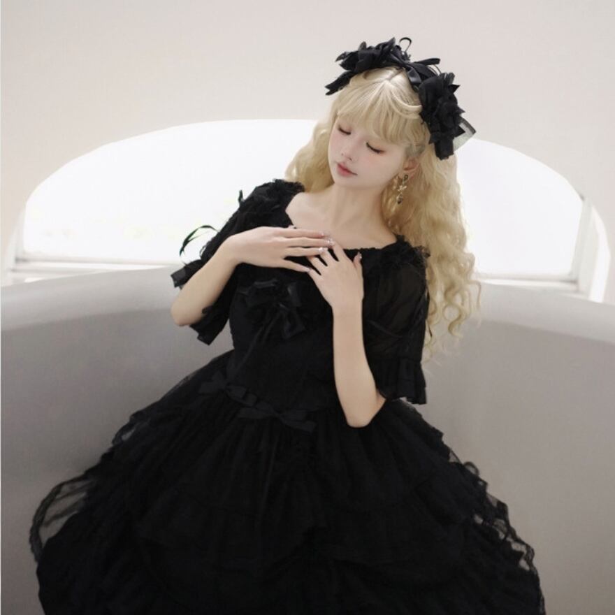 ちょっぴりダークで病みかわいいゴスロリジャンパースカートです。