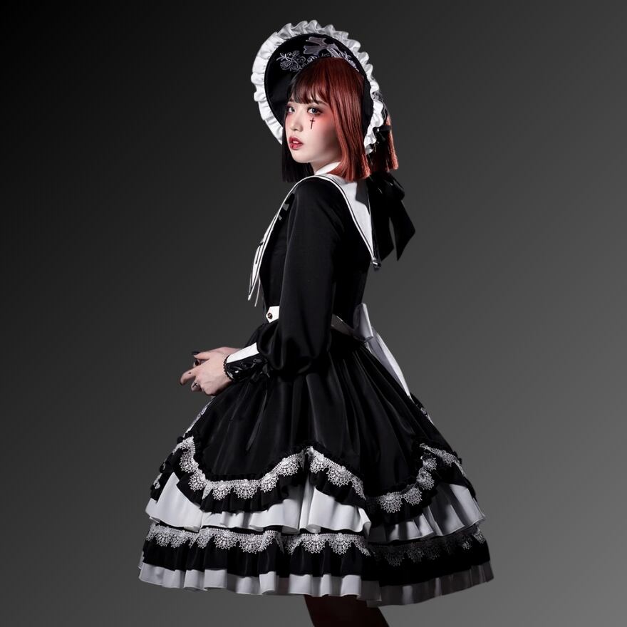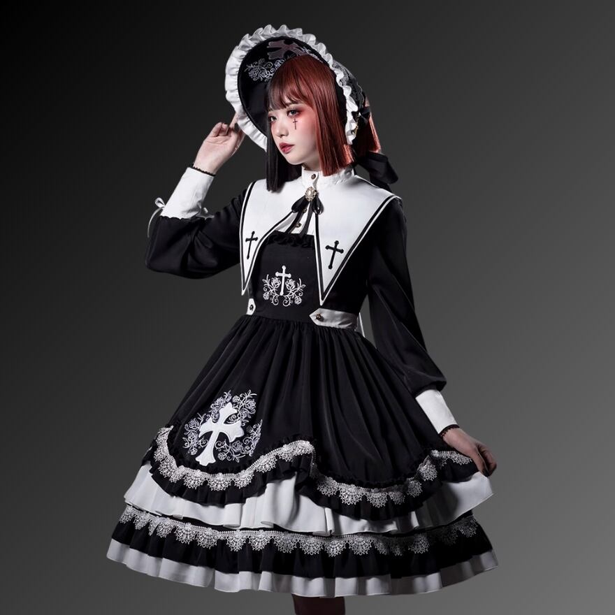 サブカル 服 地雷系 通販 セット ワンピース ボンネット ゴスロリ ダークファッション 闇かわいい 十字架 原宿スタイル ゆめかわ