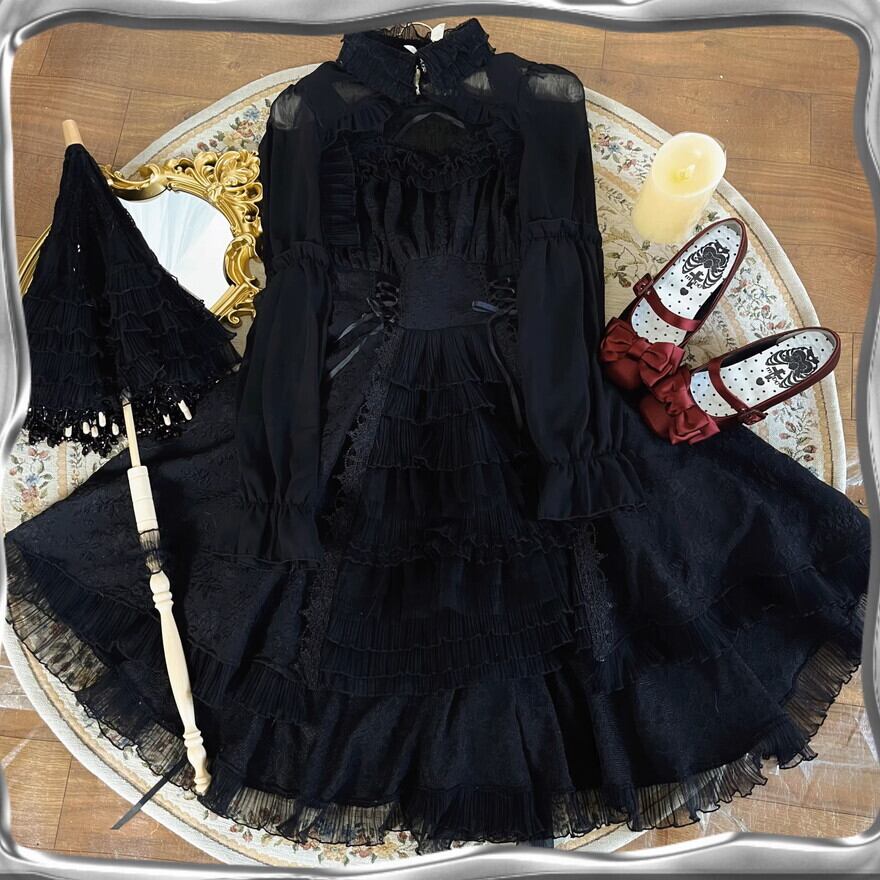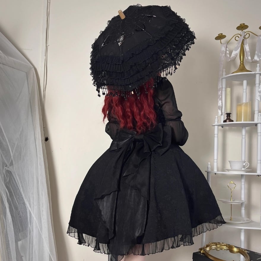 サブカル 服 地雷系 通販 ゴシック セットアップ ブラウス バックリボン 3点セット ゆめかわ 闇かわいい ヴィクトリアン