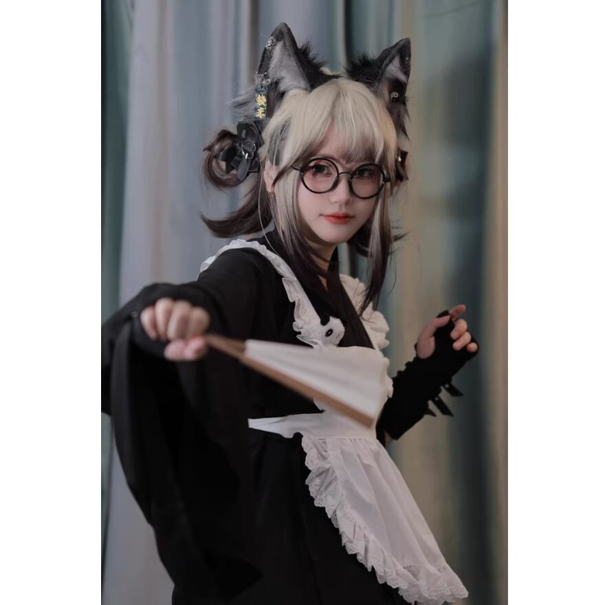 大きな振袖がかわいいメイド服とエプロンのセットです