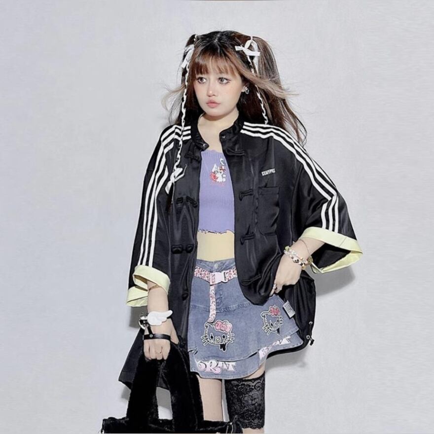 フロントにボタンが付いたチャイナスタイルの半袖シャツです。