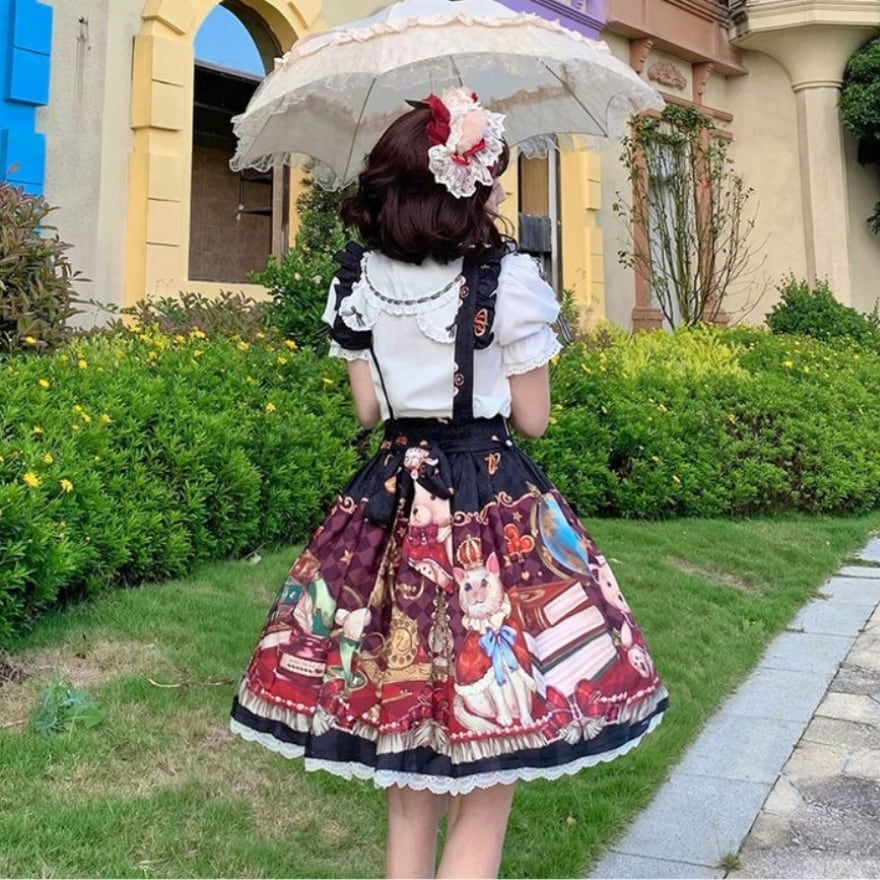 フェアリーテイルなプリント柄がかわいいサスペンダースカートです。