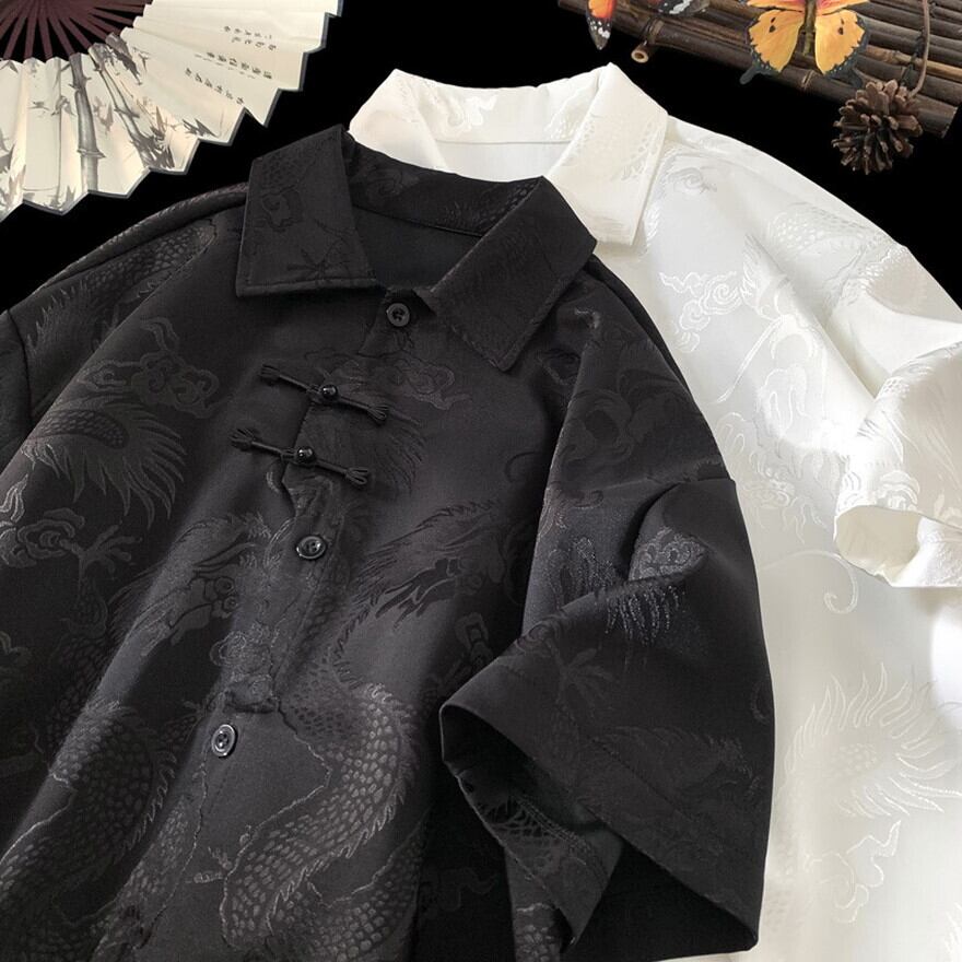 サブカル 服 地雷系 通販 メンズファッション 半袖シャツ ドラゴン柄 チャイナ風 闇かわいい クール