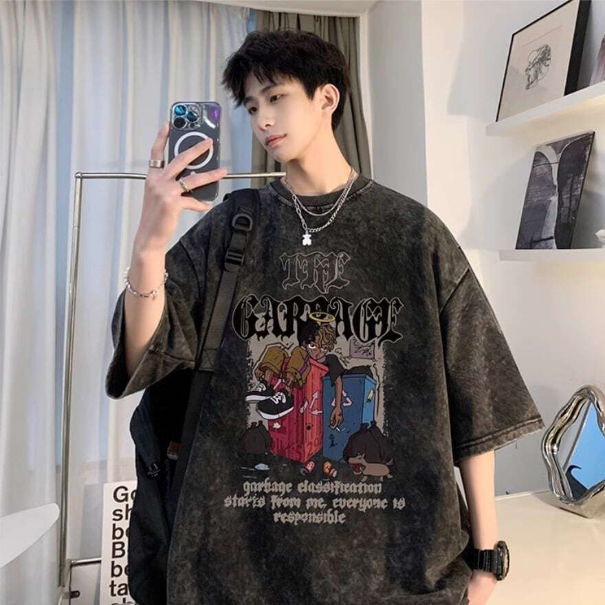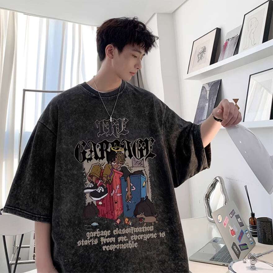 サブカル 服 地雷系 通販 メンズ 半袖 Tシャツ ネックレス 2点セット プリント柄 ウォッシュド オールド ヴィンテージ風 インディーズ 漫画 アニメ
