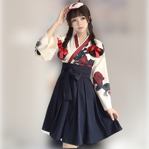 サブカル 服 地雷系 通販 セットアップ 着物 ショート丈 コスチューム 和ロリ ツバキ柄 花柄 大正浪漫