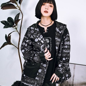 サブカル 服 地雷系 通販 チャイナ風服 チャイナ風服 古怪舎 ジャケット アウター 防風 総柄 プリント ZIP 大人かわいい