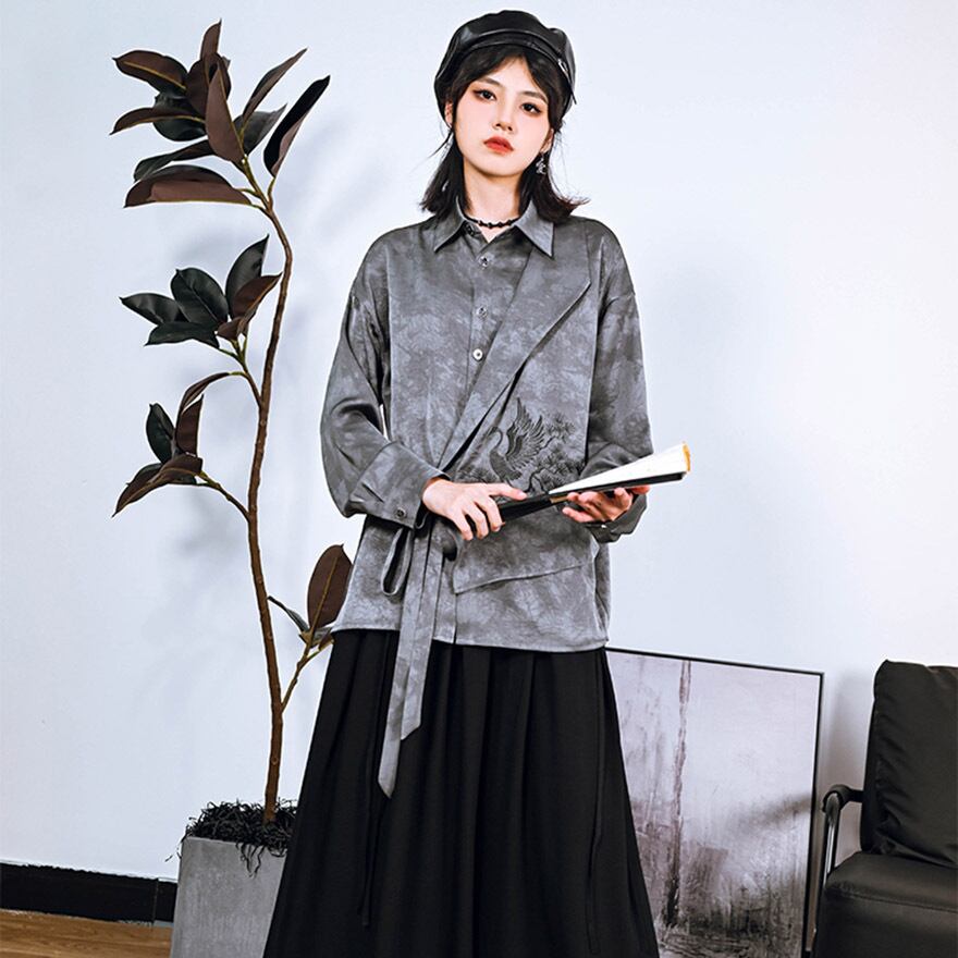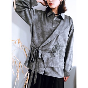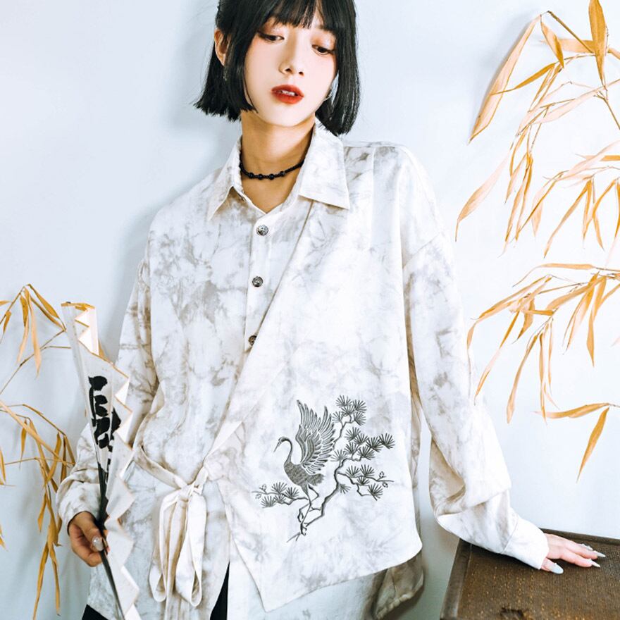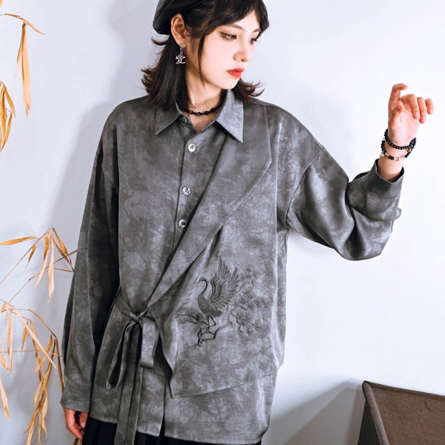 サブカル 服 地雷系 通販 チャイナ風服 チャイナ風服 古怪舎 長袖シャツ トップス 鶴 刺繍 大人かわいい