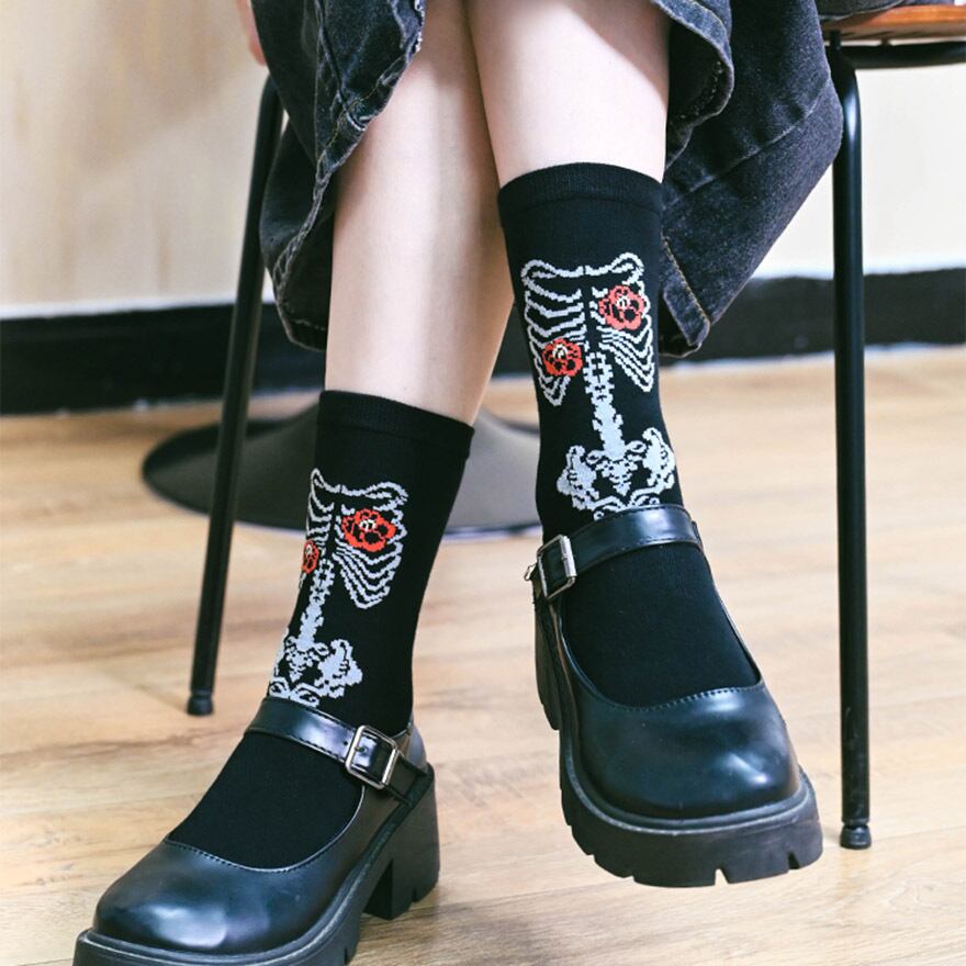 サブカル 服 地雷系 通販 チャイナ風服 チャイナ風服 古怪舎 靴下 ソックス フラワーボーン スケルトン 闇かわいい