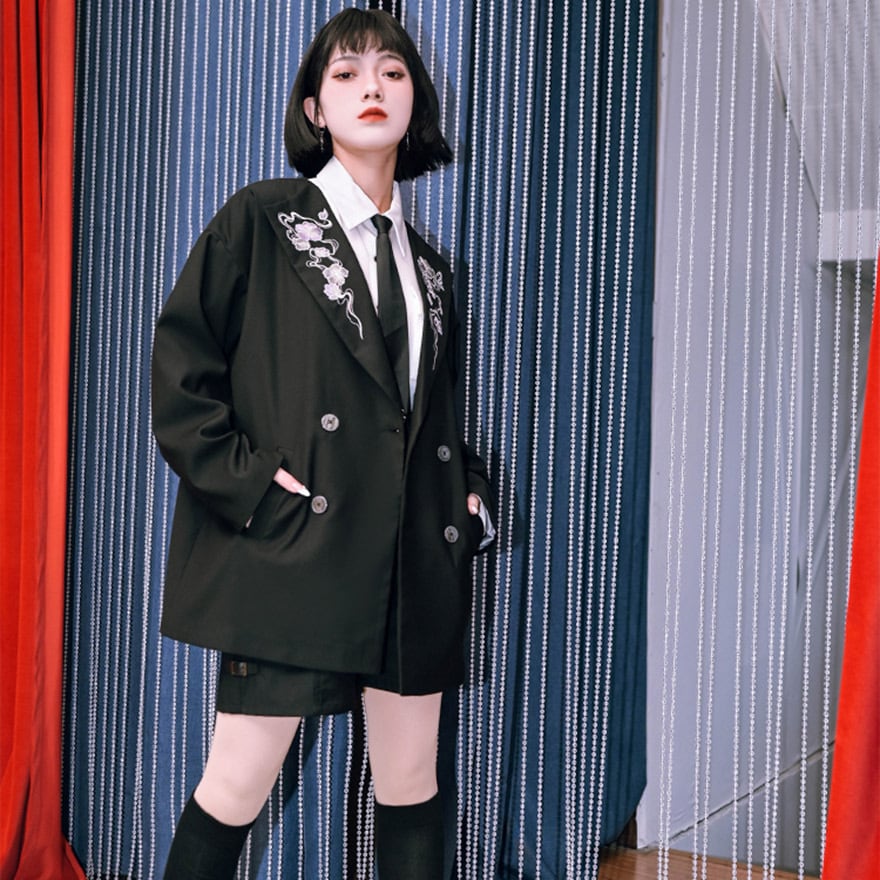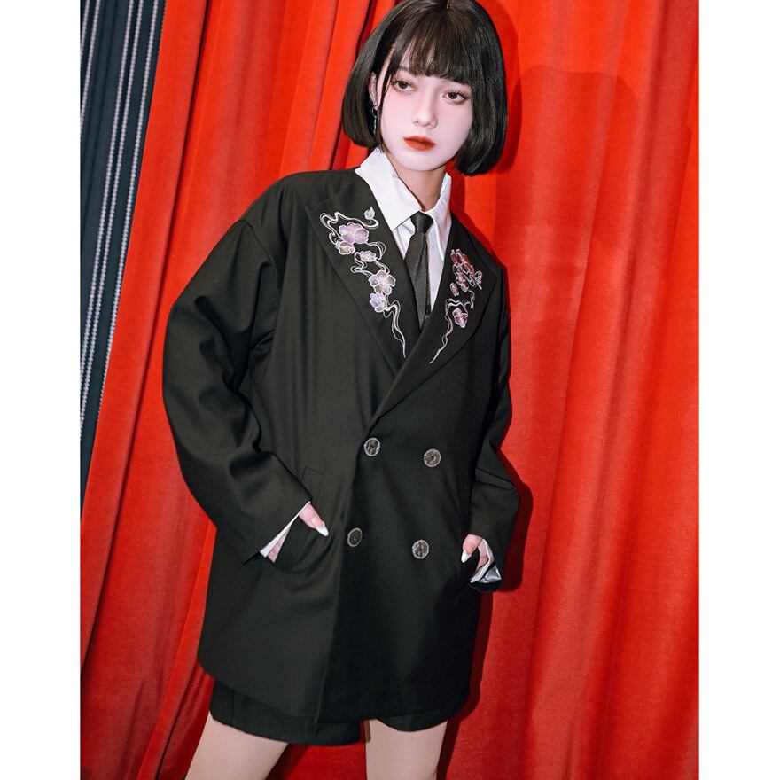 サブカル 服 地雷系 通販 チャイナ風服 チャイナ風服 古怪舎 ジャケット アウター ブレザー 蝶 花柄 刺繍 闇かわいい