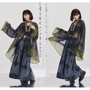 サブカル 服 地雷系 通販 チャイナ風 カーディガン 羽織り スモッグ シフォン 透け感 シアー Vネック 闇かわいい