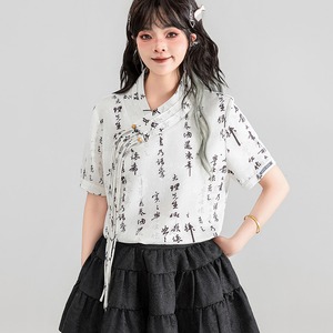 サブカル 服 地雷系 通販 KEIKOシリーズ チャイナ風 半袖シャツ トップス 漢字プリント ホワイト 夏 闇かわいい