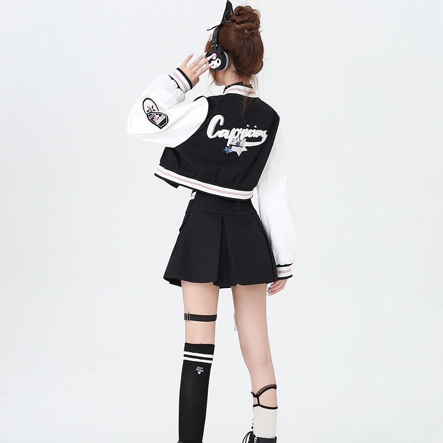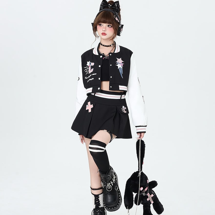 サブカル 服 地雷系 通販 CRAZYGIRLシリーズ 長袖ジャケット ロング丈 アウター 羽織り アメリカンカレッジ ストリート