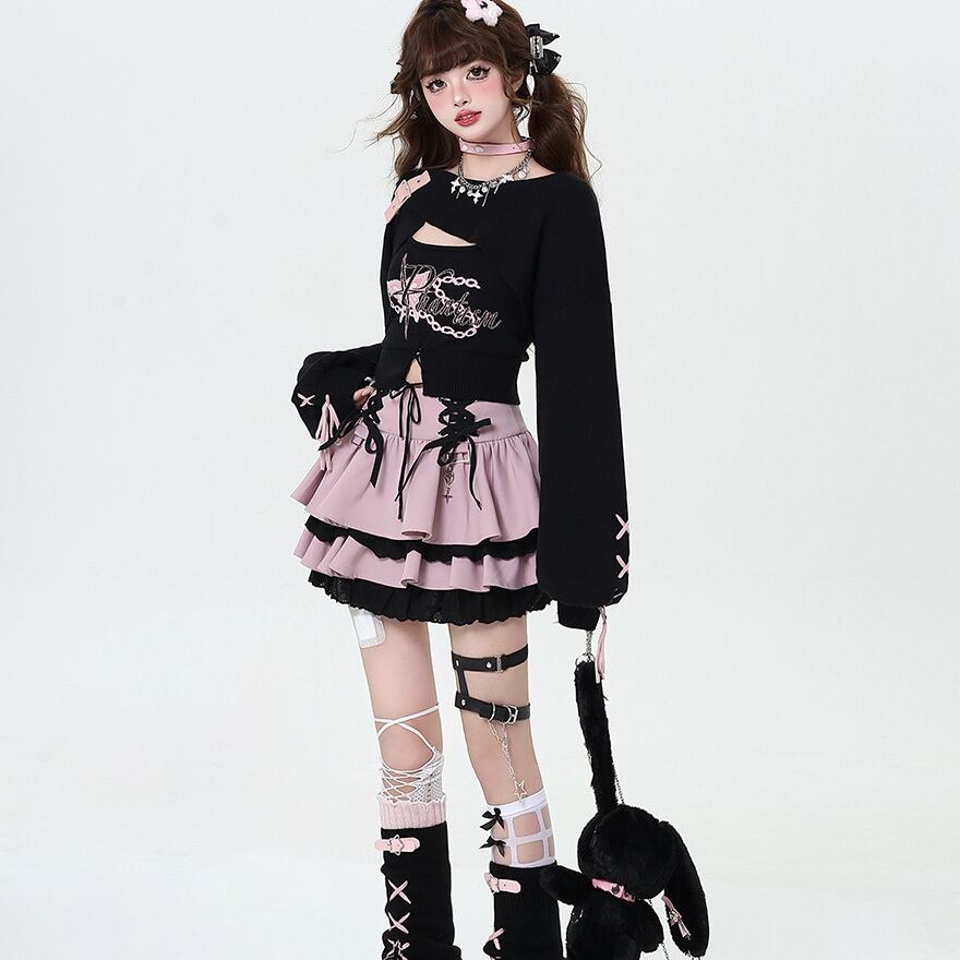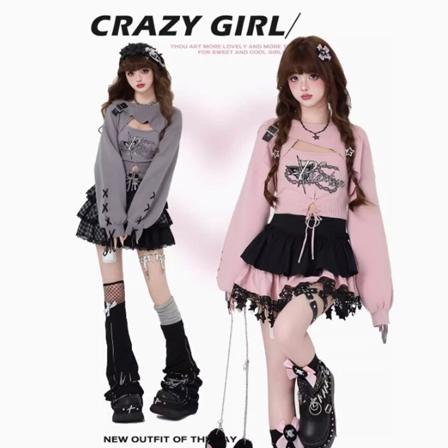 サブカル 服 地雷系 通販 CRAZYGIRLシリーズ 長袖ニット キャミソール ツーピース 2点セット セーター 重ね着