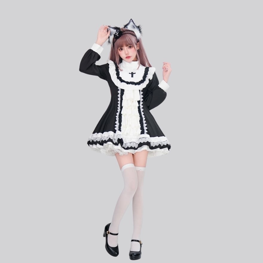 サブカル 服 地雷系 通販 ハロウィン コスプレ 眼帯 十字架 レース コスプレ ダークファッション ワンピース コスプレ