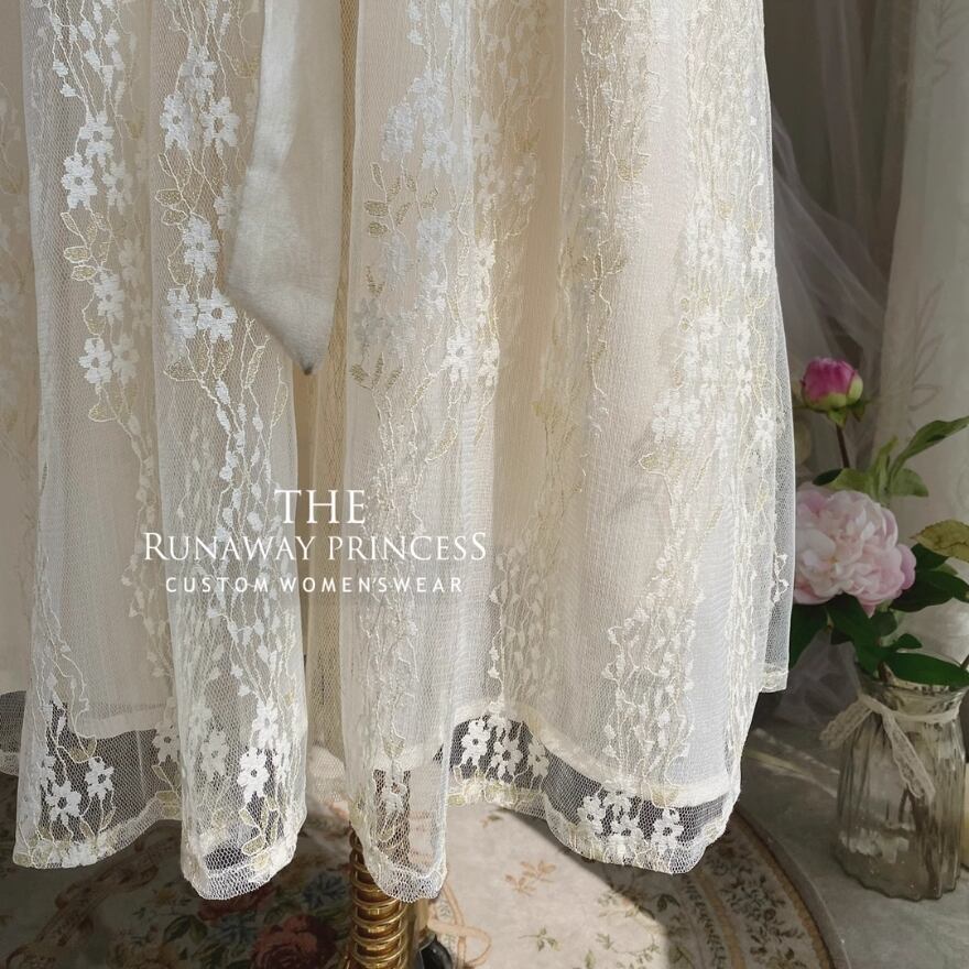 控えめで上品なハイウエストロング丈のクラロリワンピースです