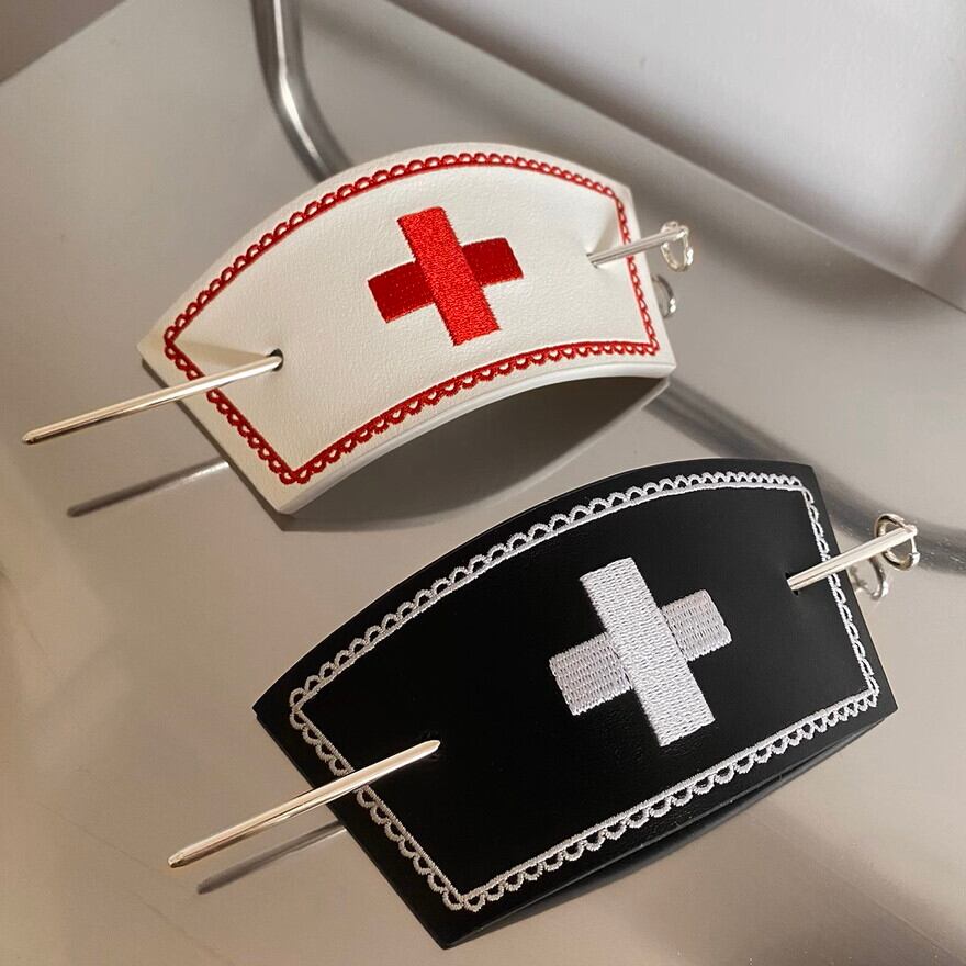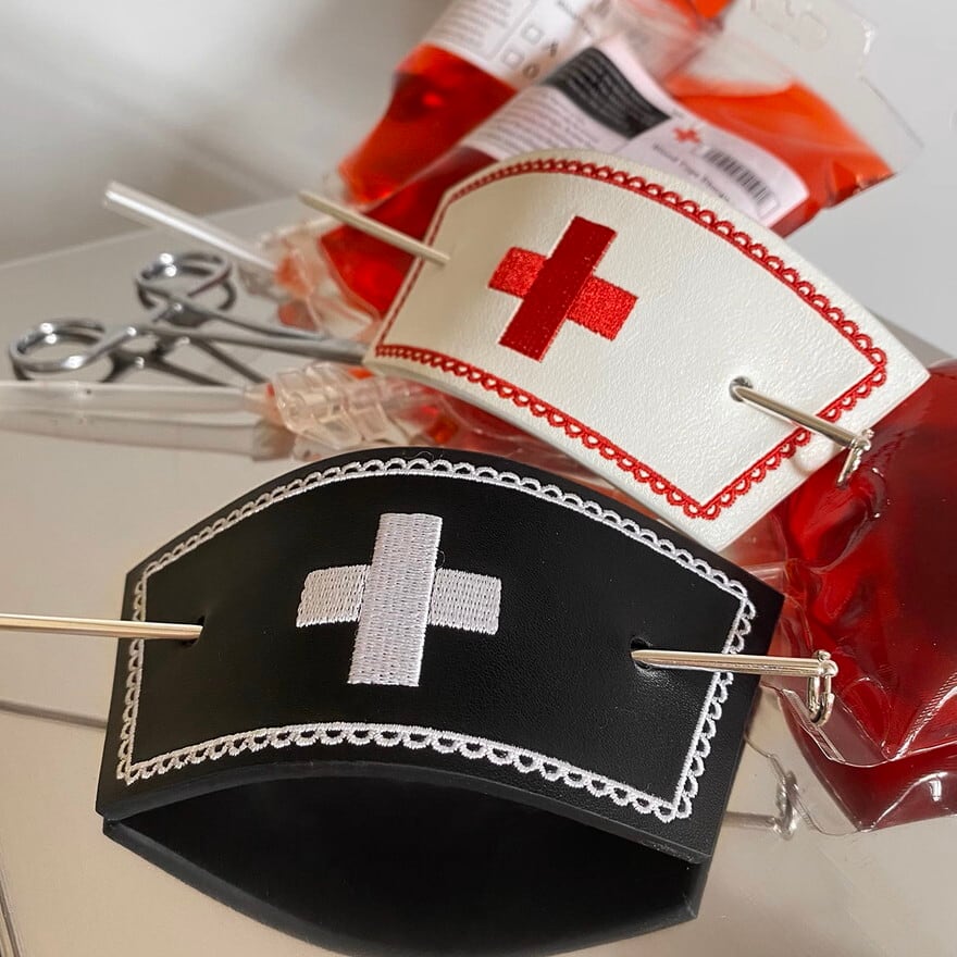 レザーに刺繍クロスが病みかわいいナース帽です