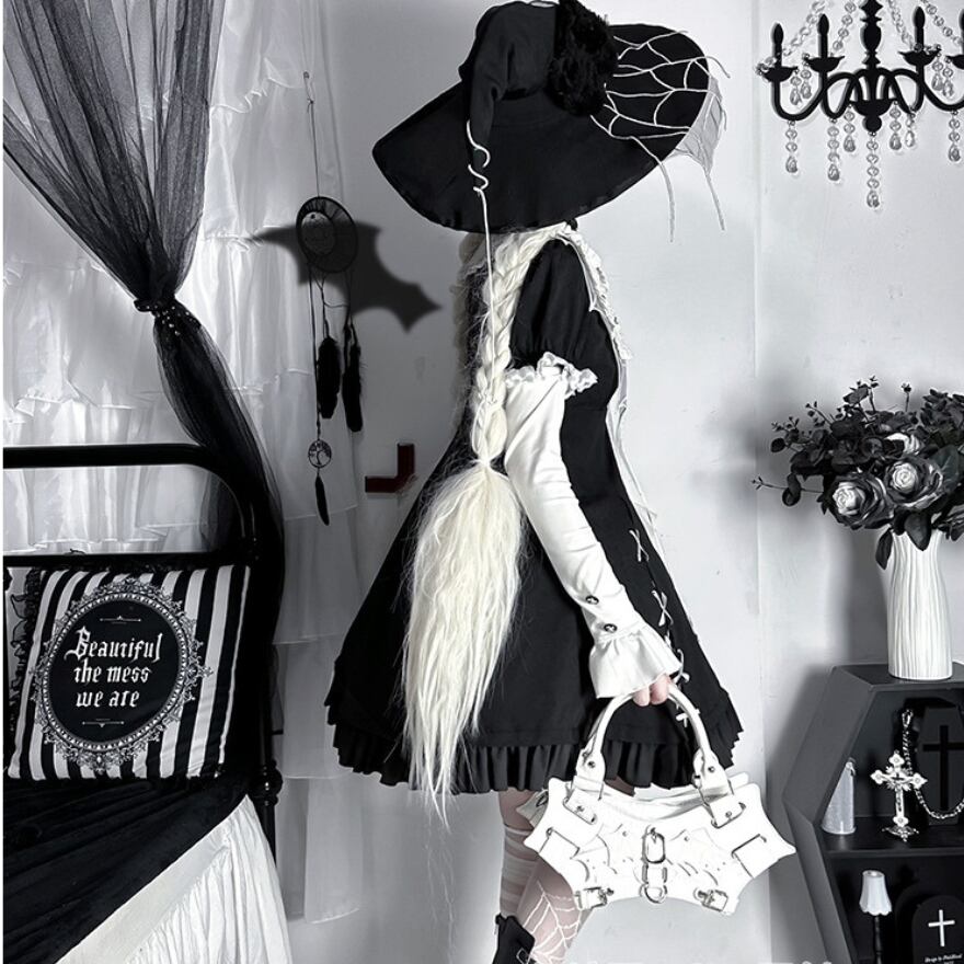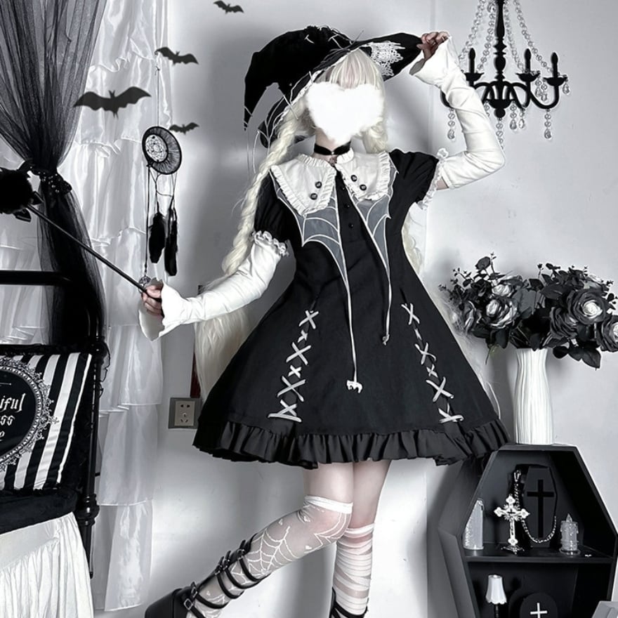サブカル 服 地雷系 通販 ハロウィン衣装 コスプレ 魔女 衣装 ワンピース レース 編み上げ イベント衣装 舞台衣装