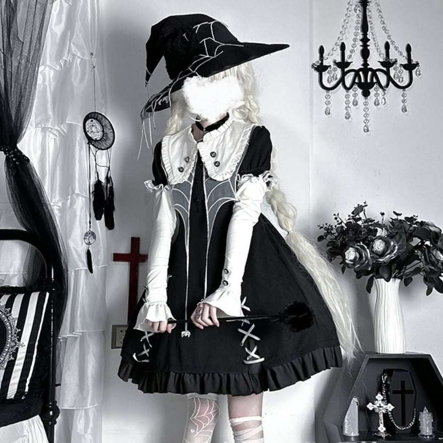 サブカル 服 地雷系 通販 ハロウィン衣装 コスプレ 三角帽子 蜘蛛の巣 イベント衣装 舞台衣装