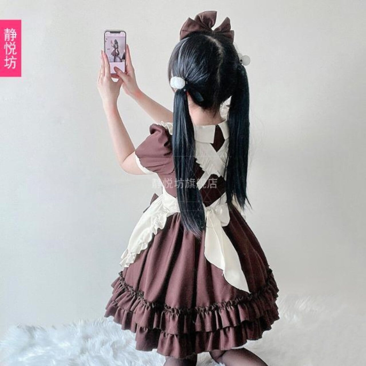 サブカル 服 地雷系 通販 タイムセール メイド服 3点セット ワンピ エプロン ヘッドアクセアリー ネックリボン 秋葉原 メイドカフェ コスプレ